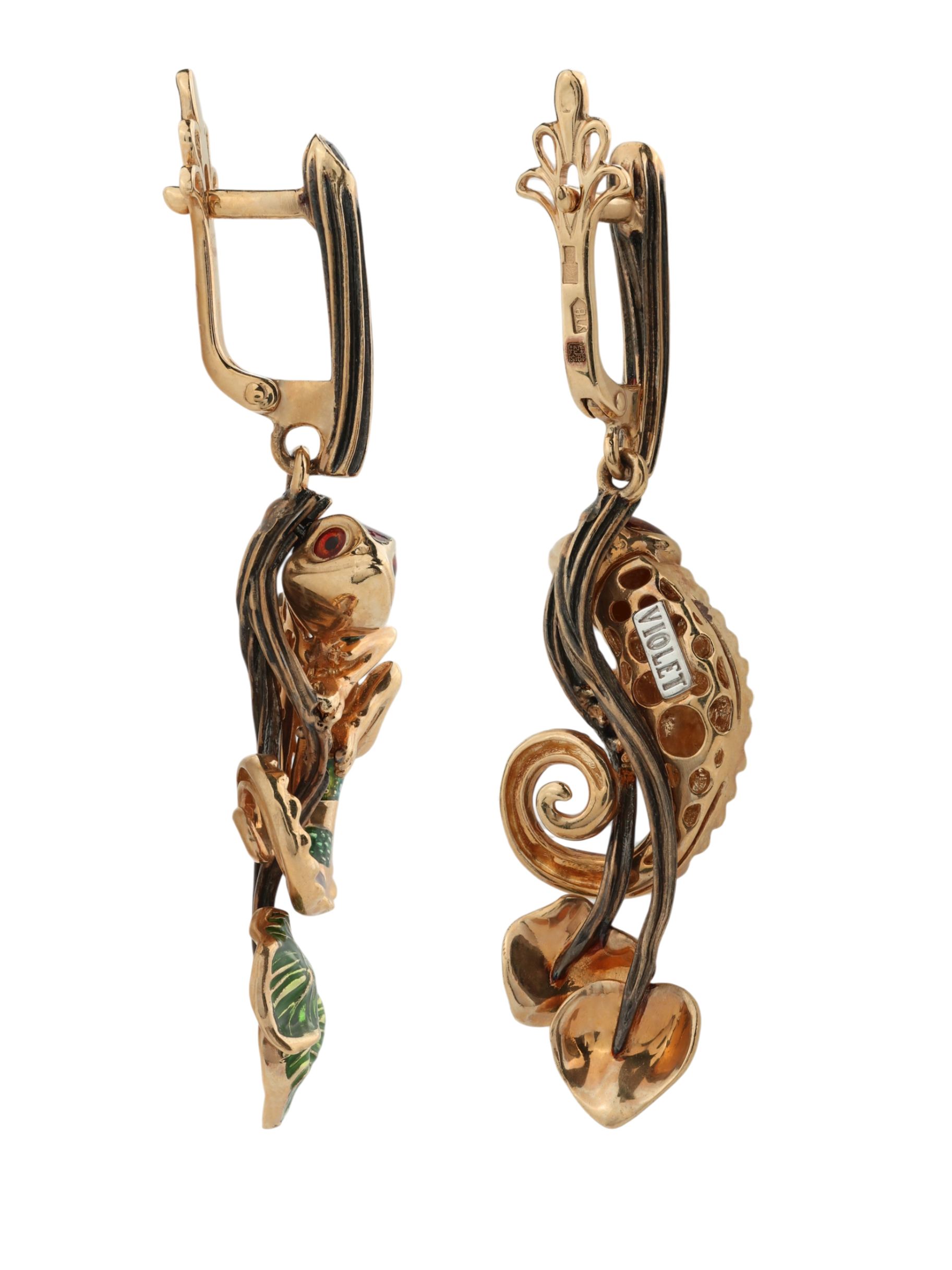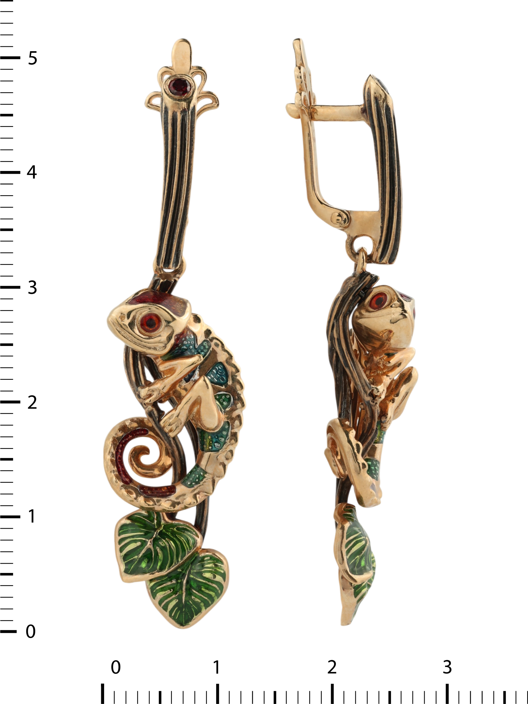 Серьги из золота c эмалью и гранатом