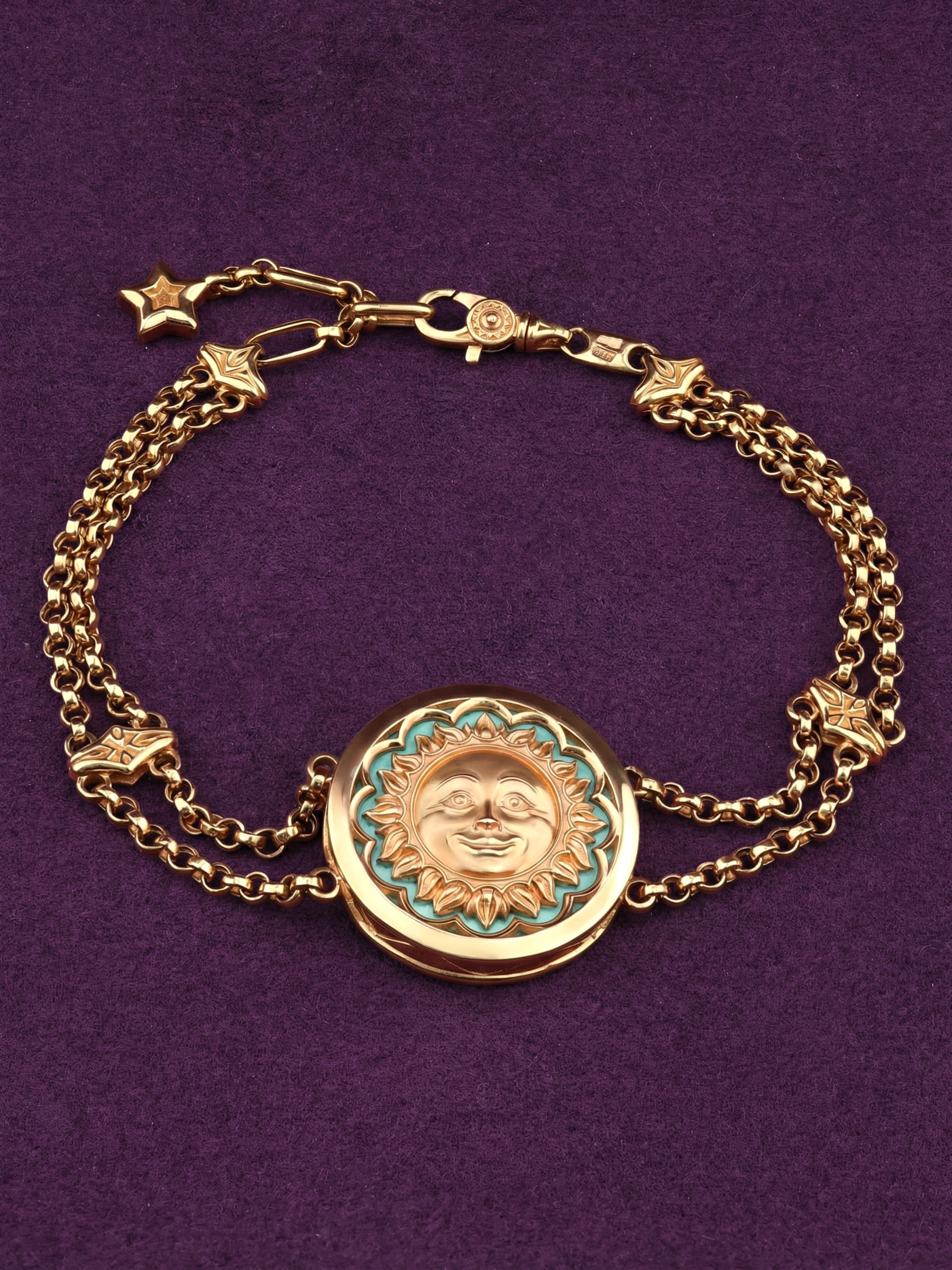 Браслет из лимонного золота c бирюзой и лазуритом