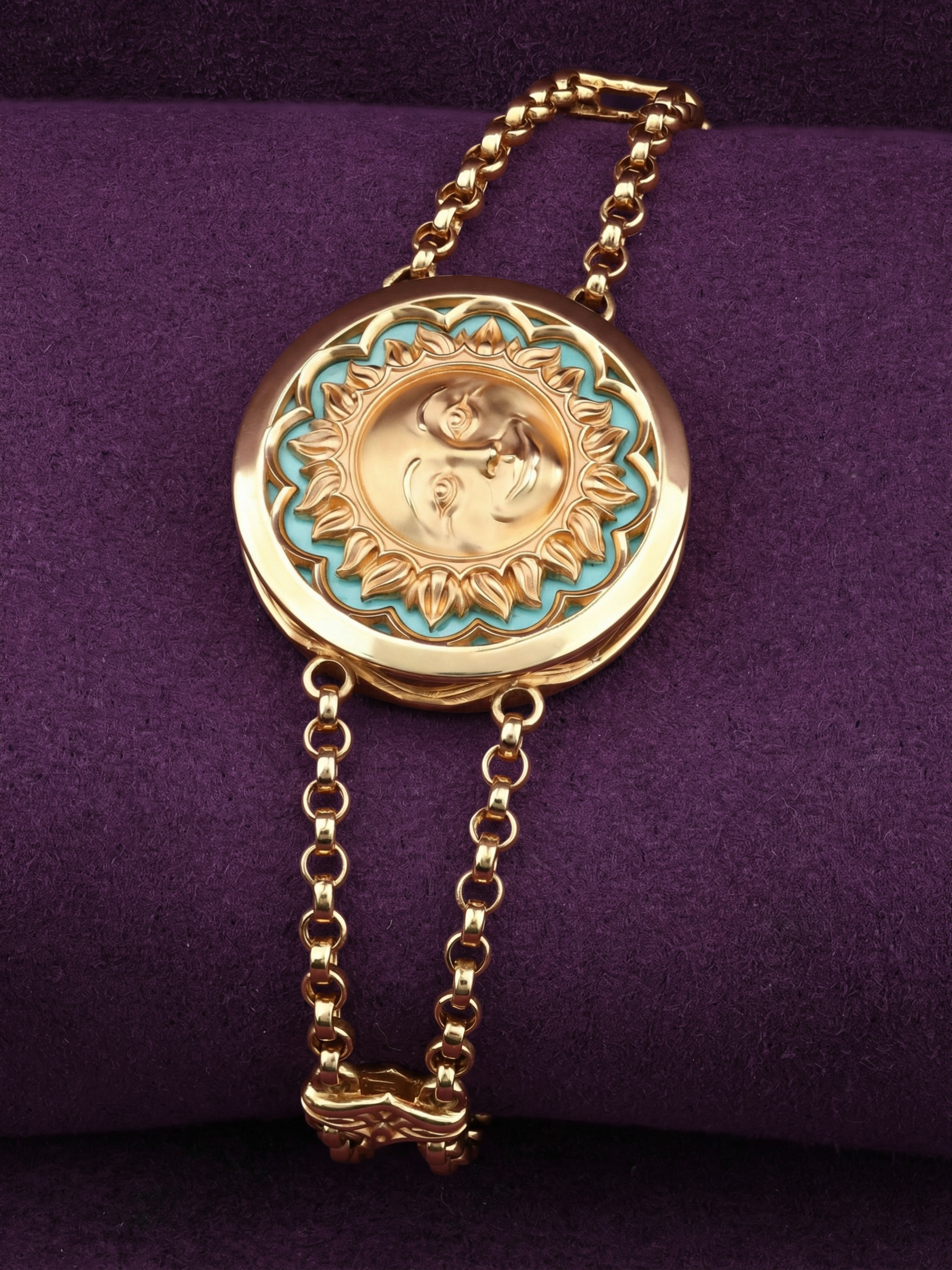 Браслет из лимонного золота c бирюзой и лазуритом