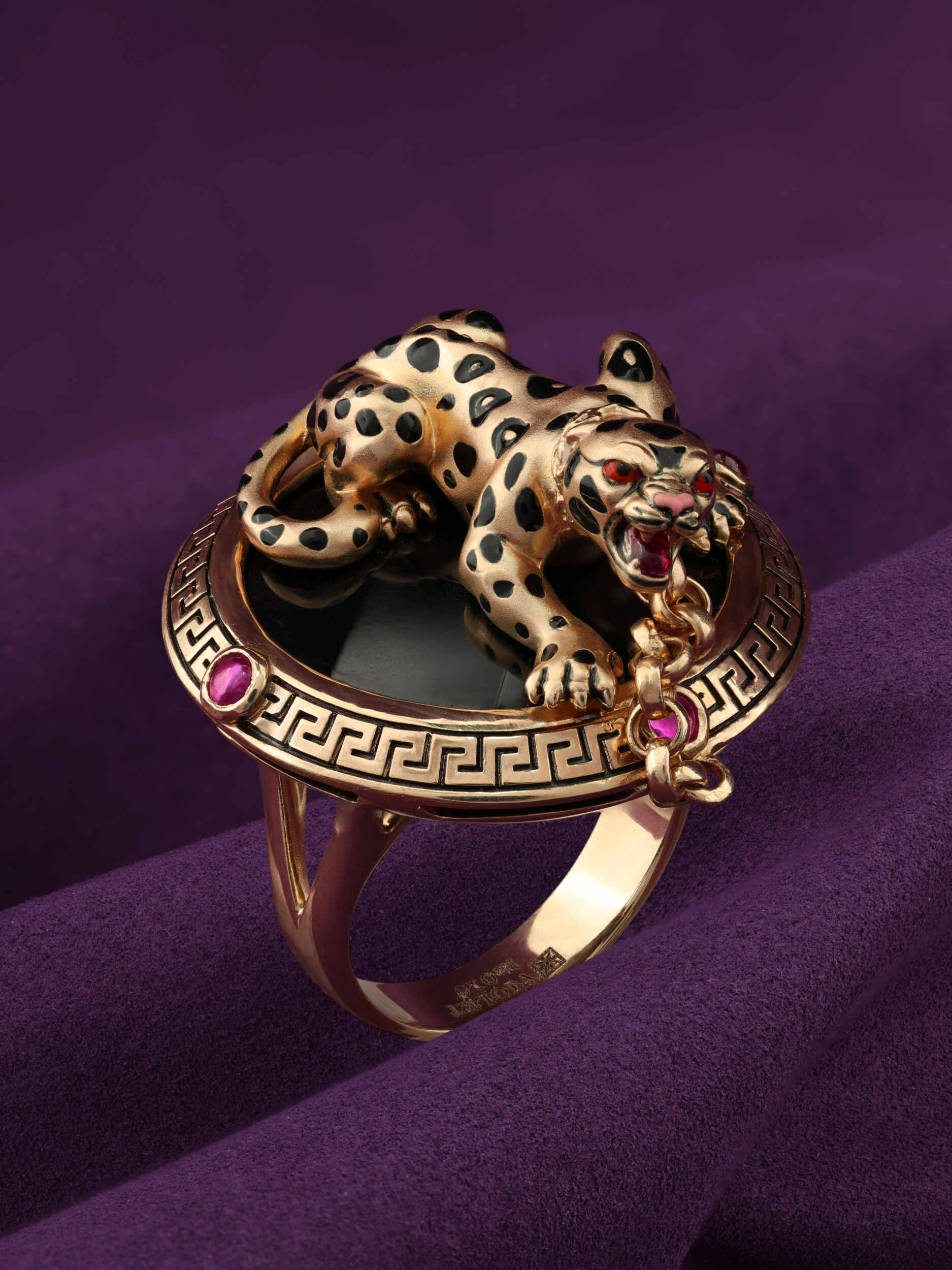 Кольцо из золота c эмалью, ониксом и рубином