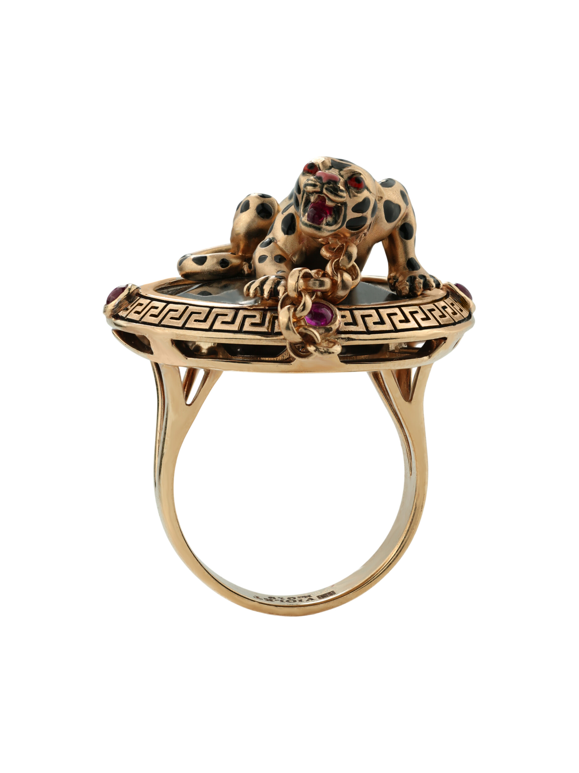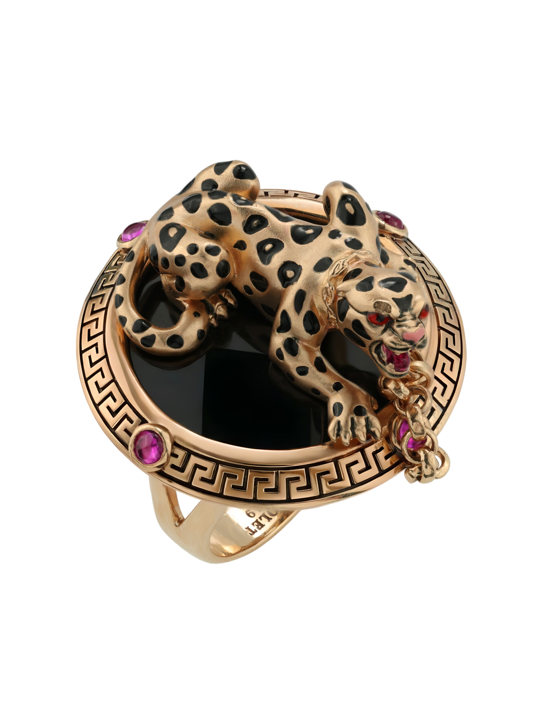 Кольцо из золота c эмалью, ониксом и рубином