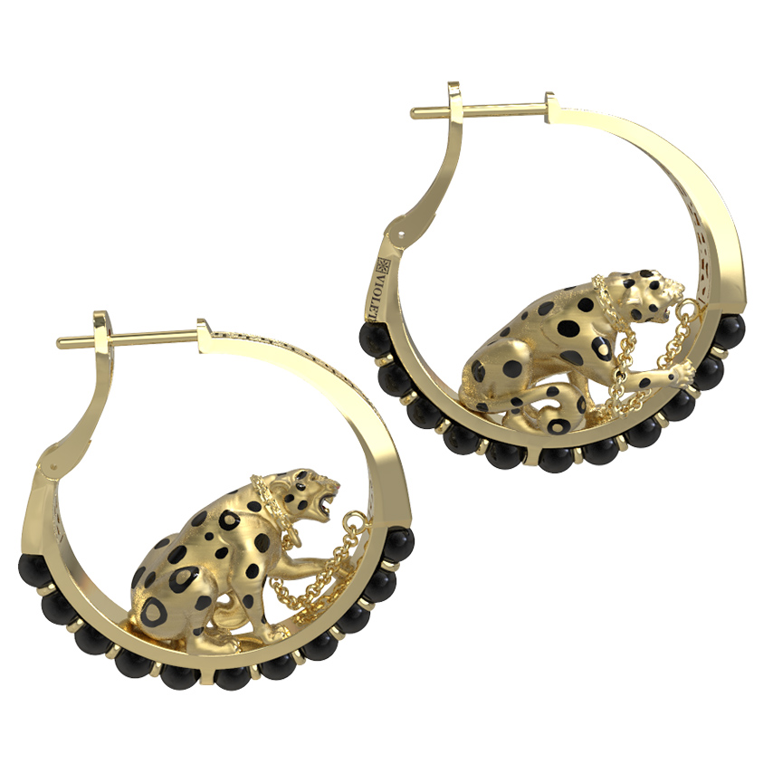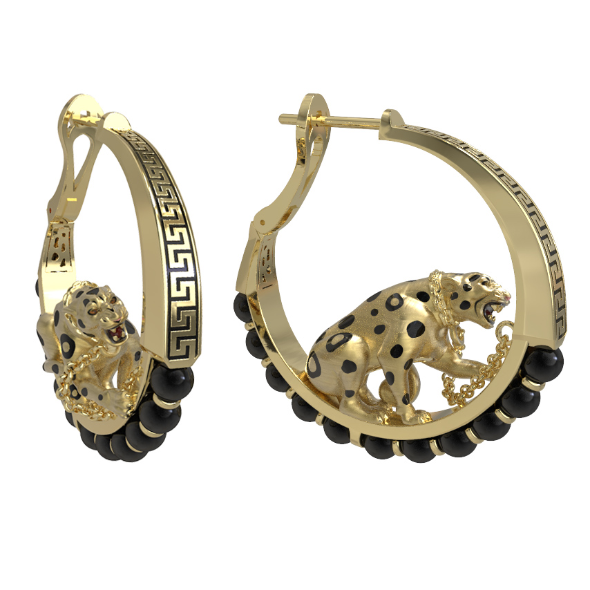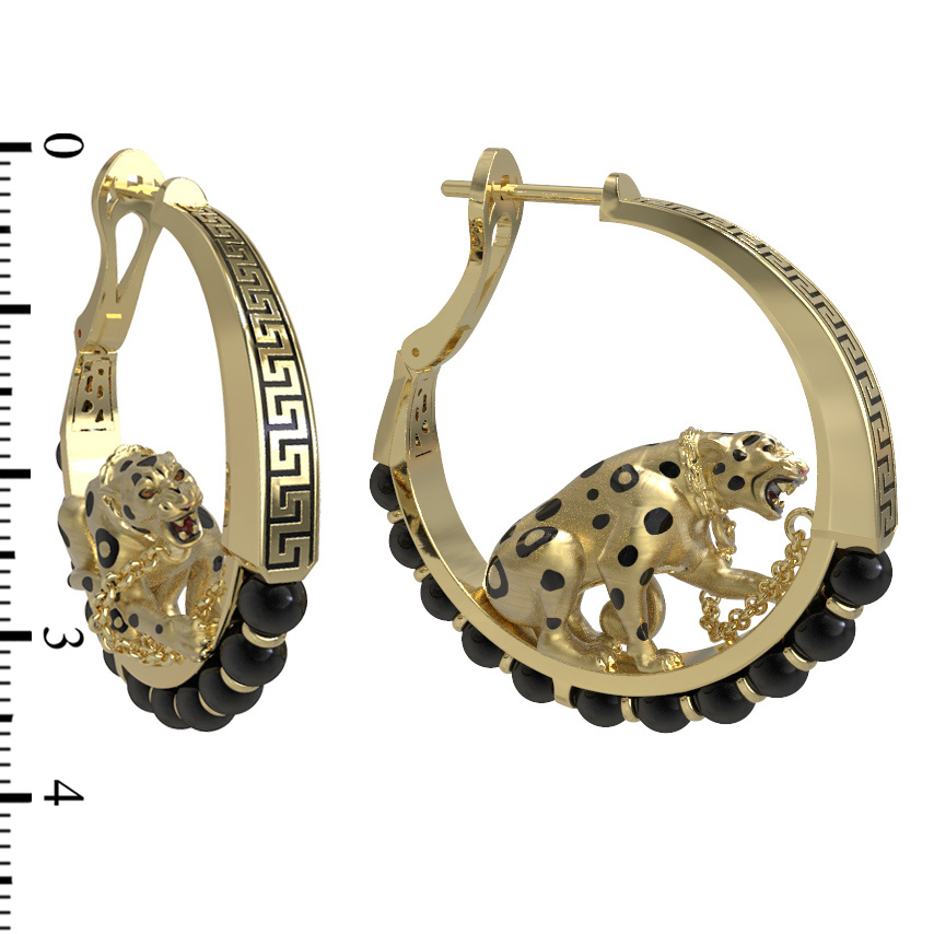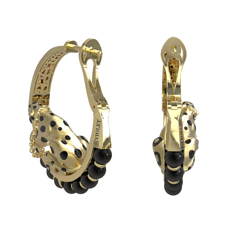 Серьги из лимонного золота c эмалью и ониксом