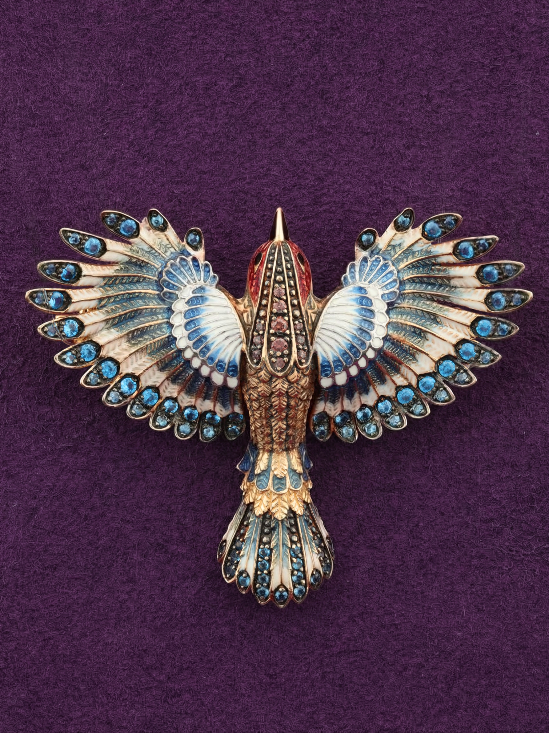 Брошь из золота c эмалью и фианитом