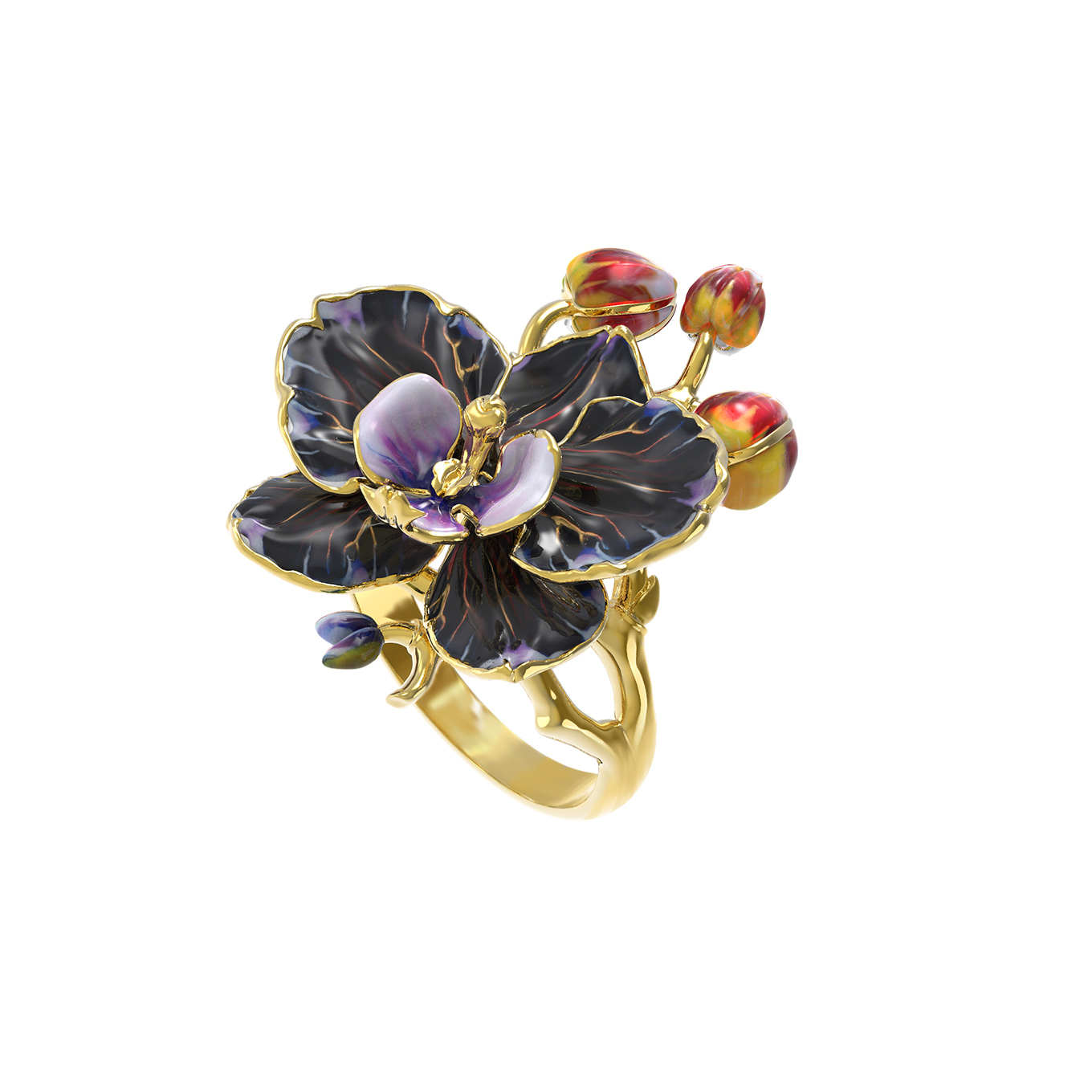 Кольцо из лимонного золота c эмалью