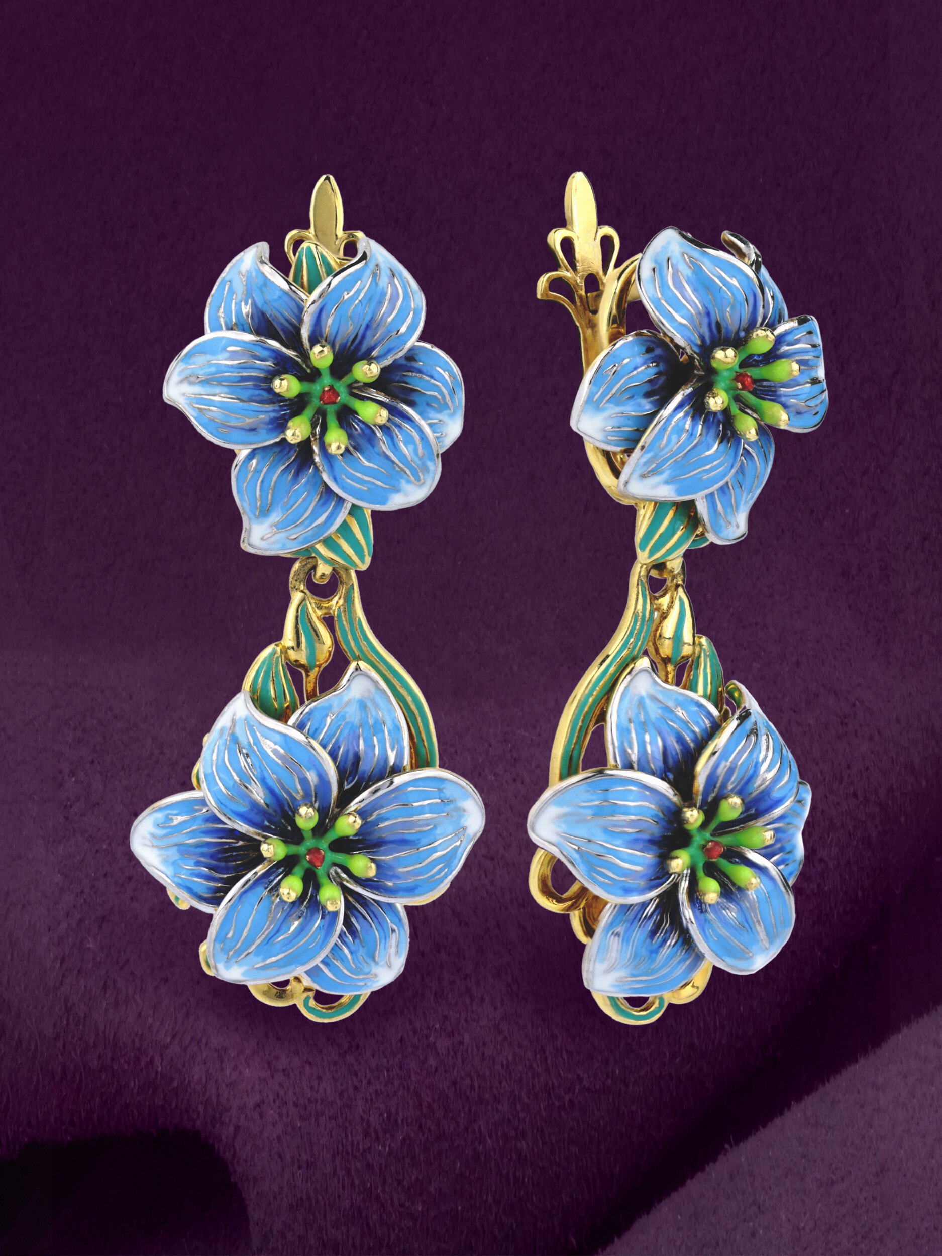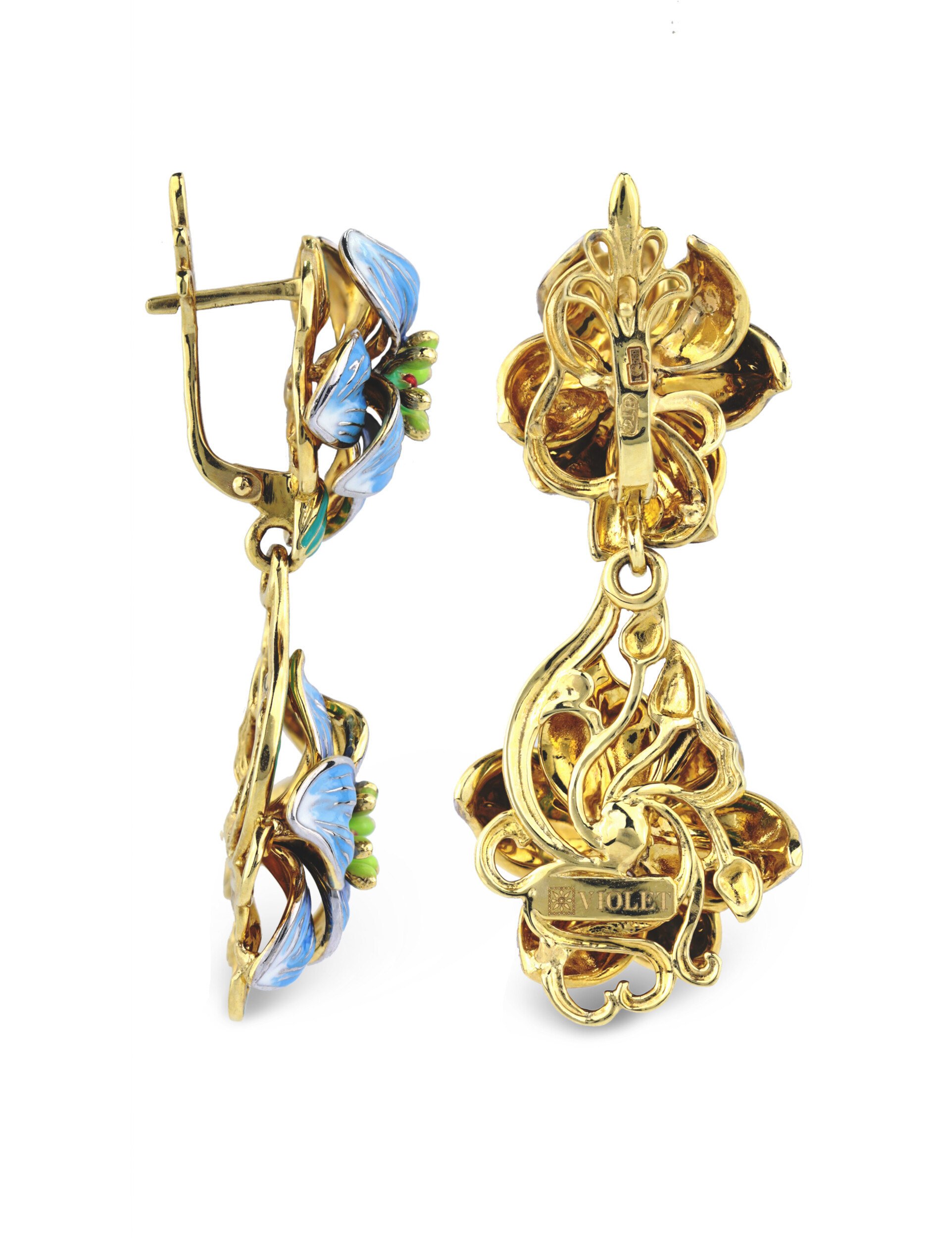 Серьги из лимонного золота c эмалью