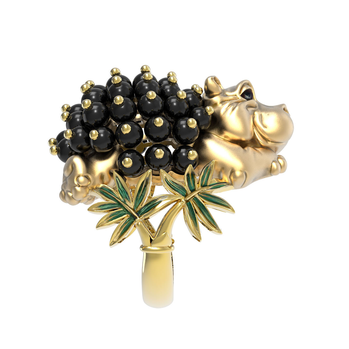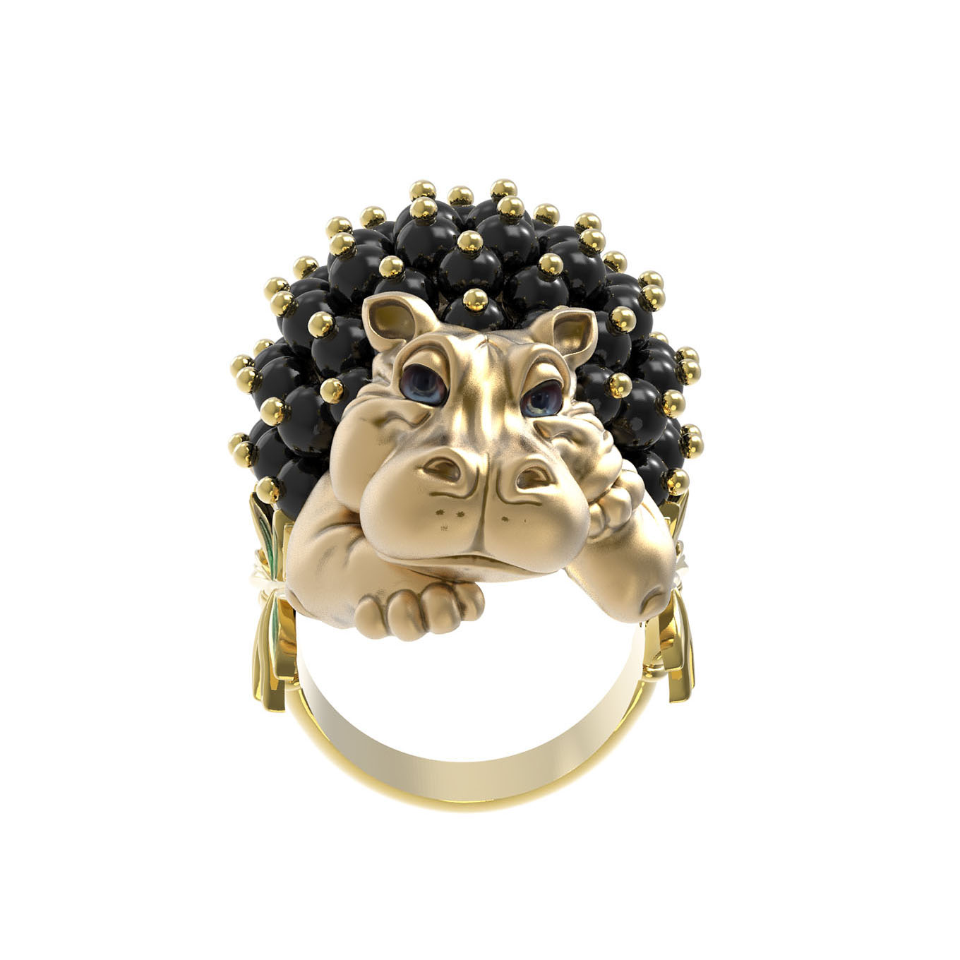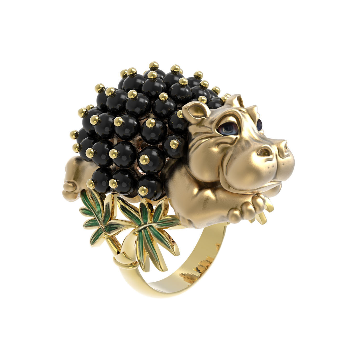 Кольцо из лимонного золота c эмалью и ониксом