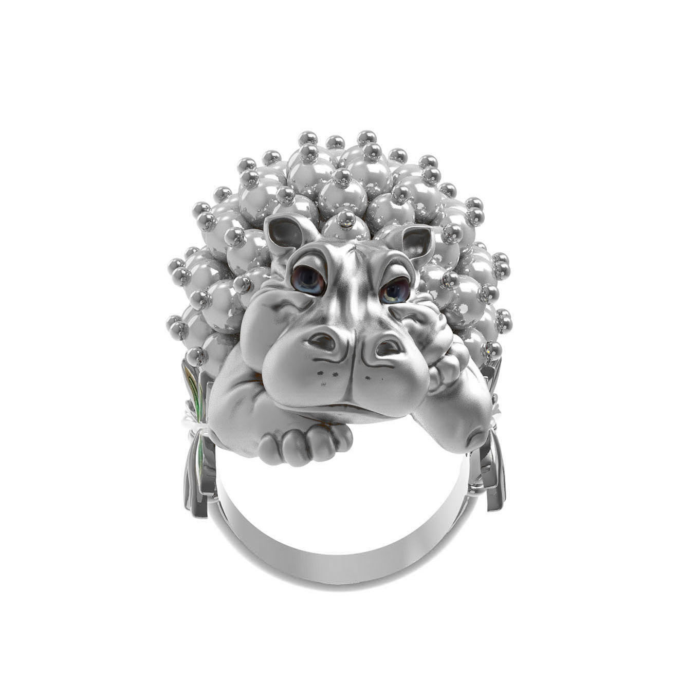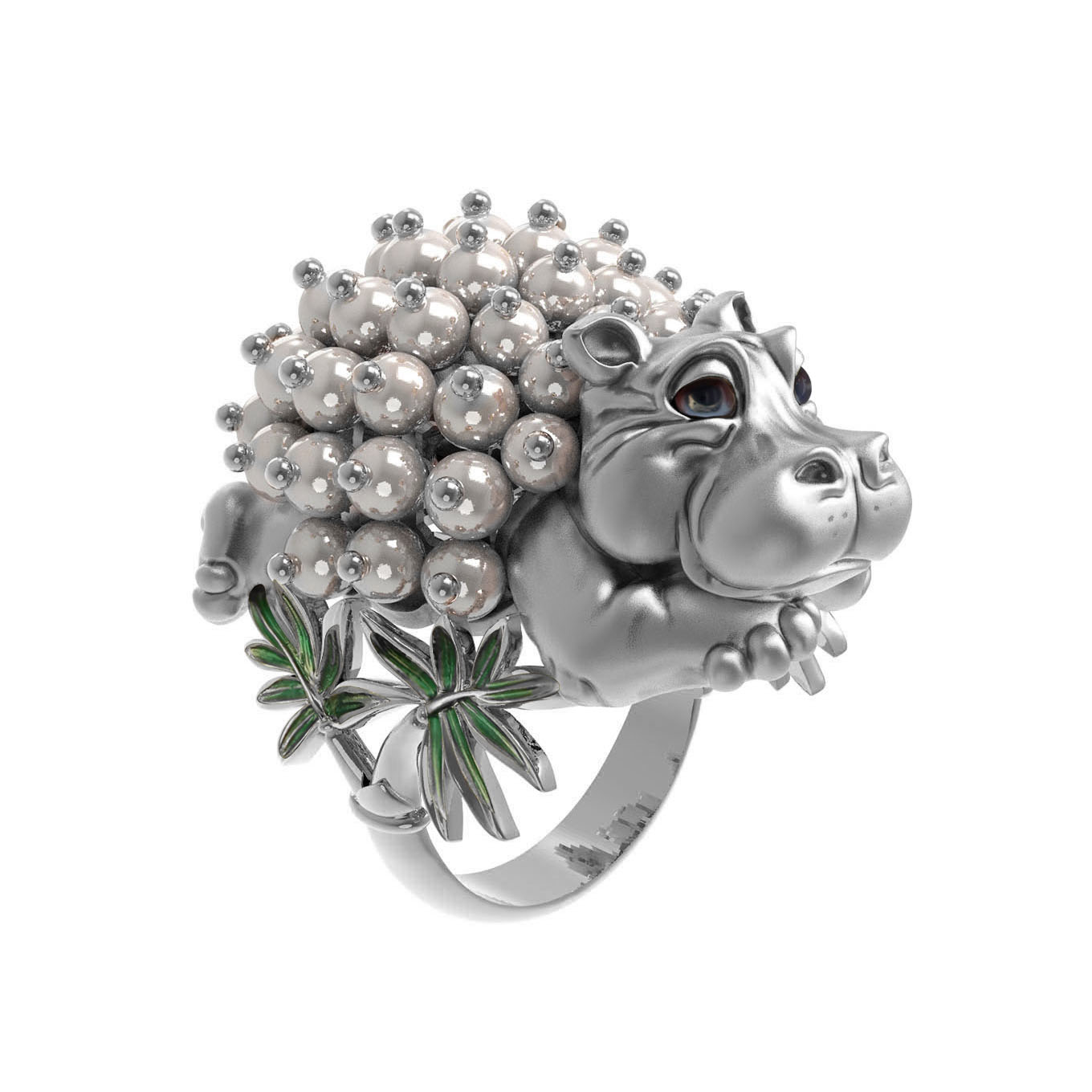 Кольцо из белого золота c эмалью и жемчугом