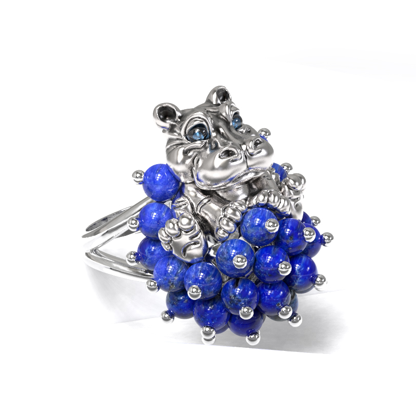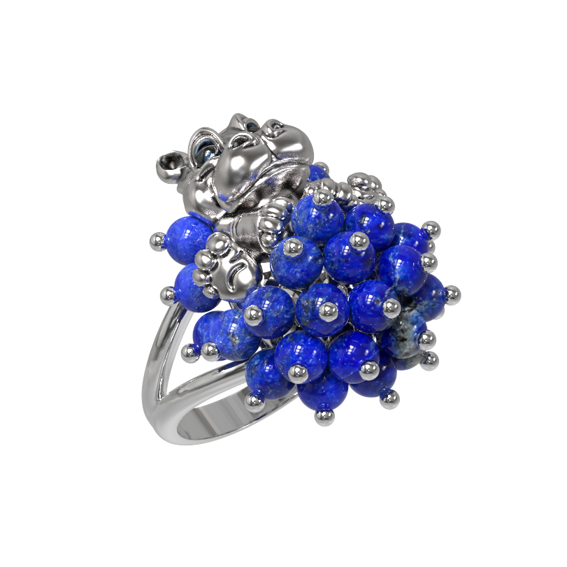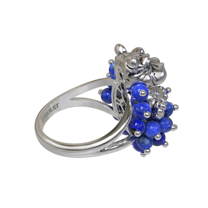 Кольцо из белого золота c эмалью и лазуритом