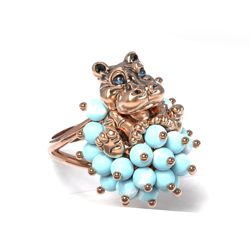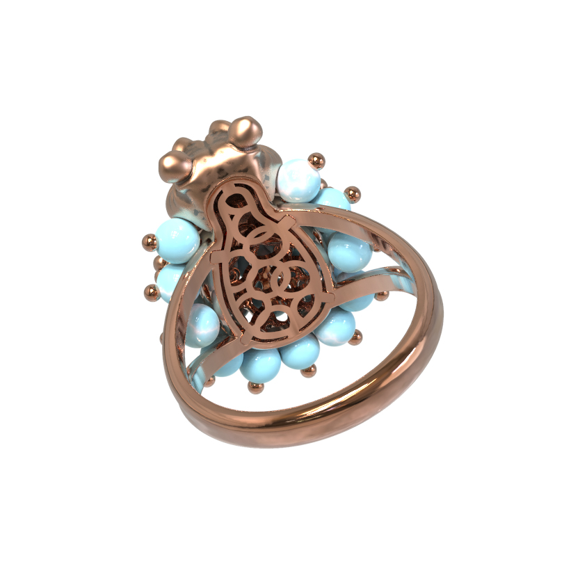 Кольцо из золота c эмалью и бирюзой