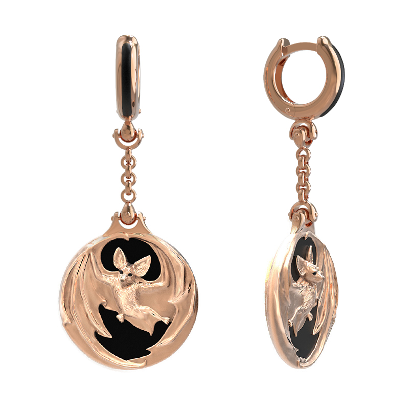 Серьги из золота c эмалью и ониксом