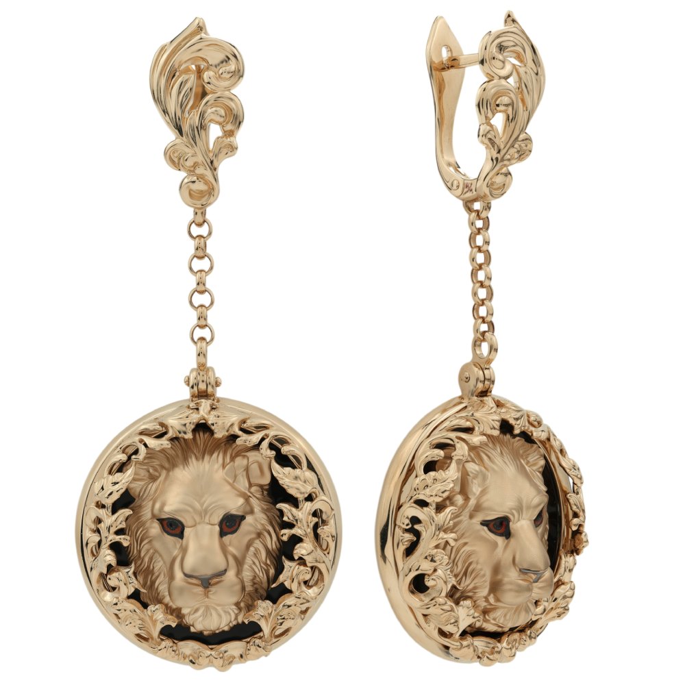 Серьги из золота c эмалью и ониксом