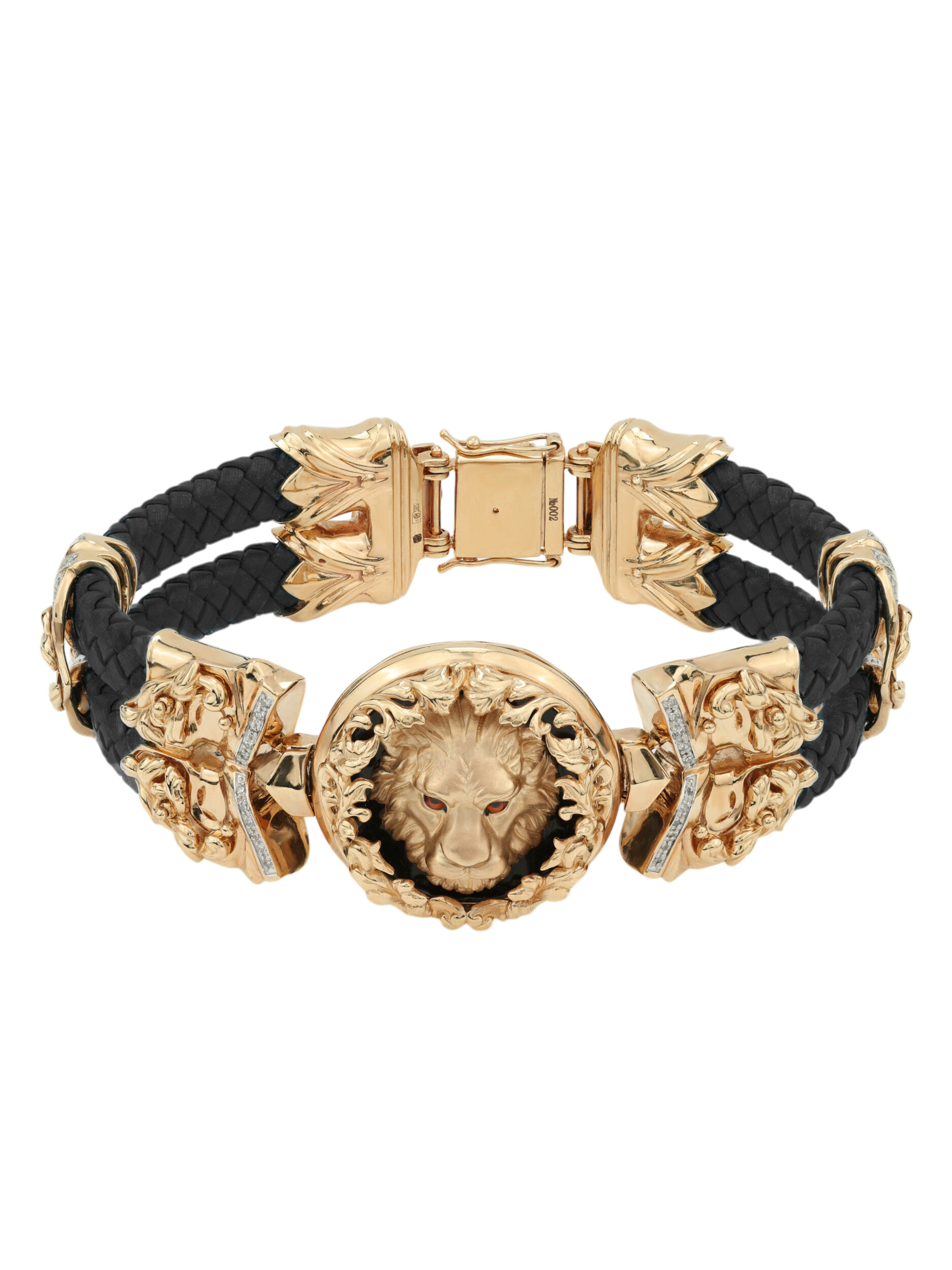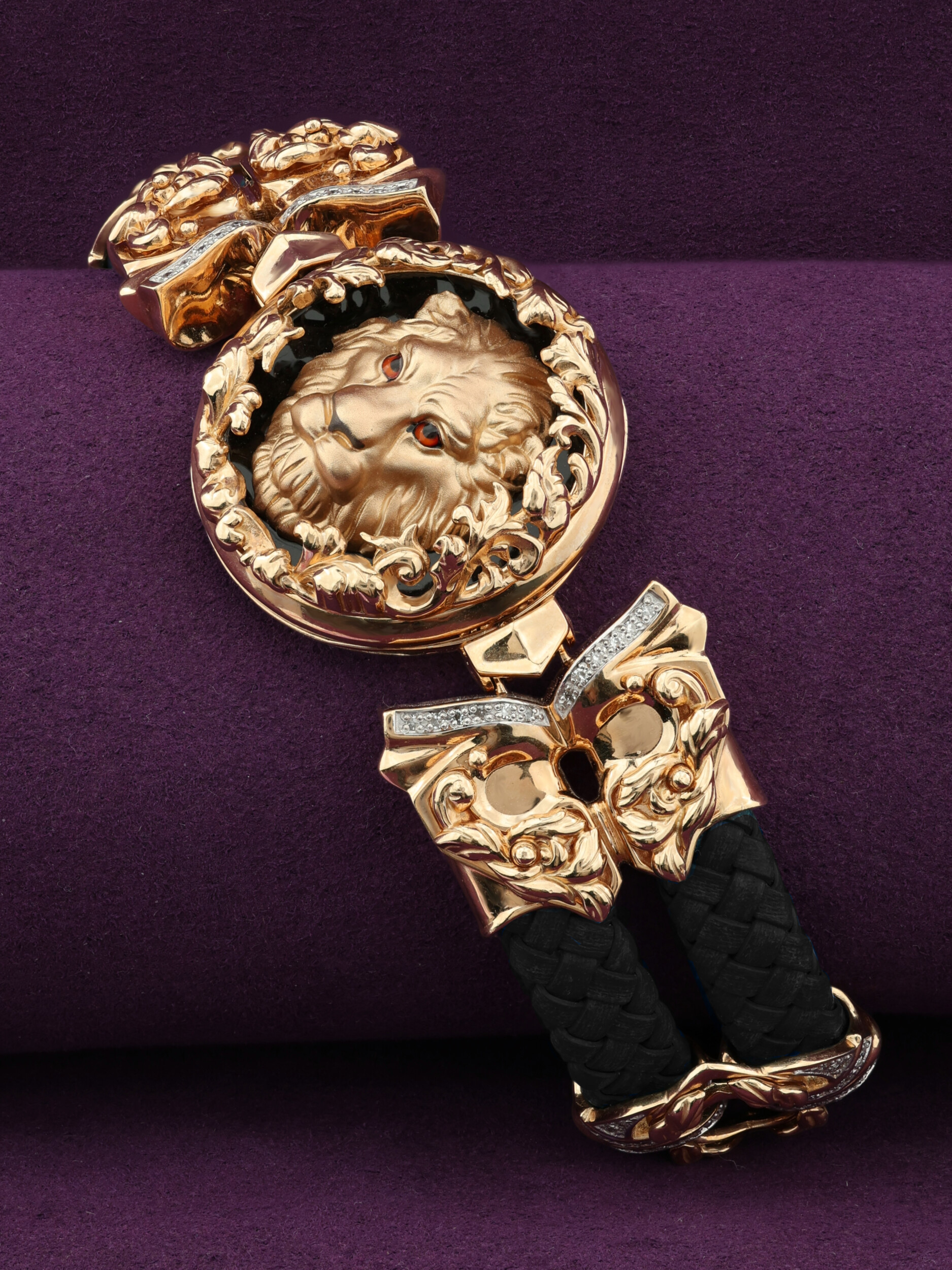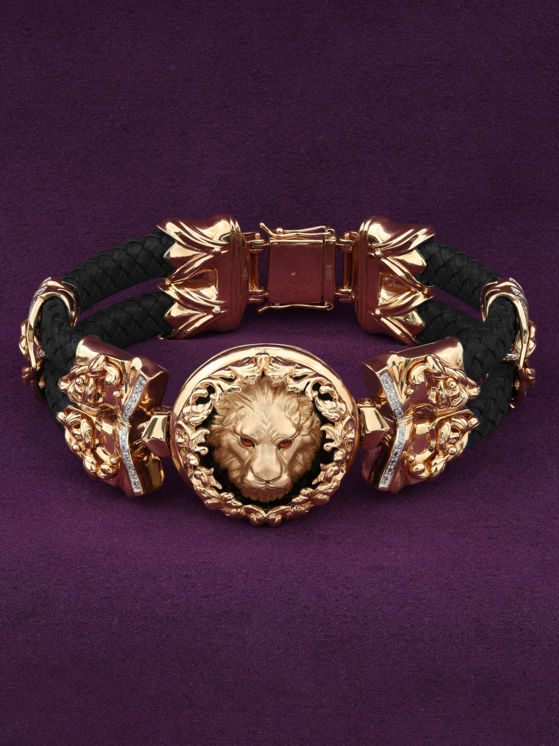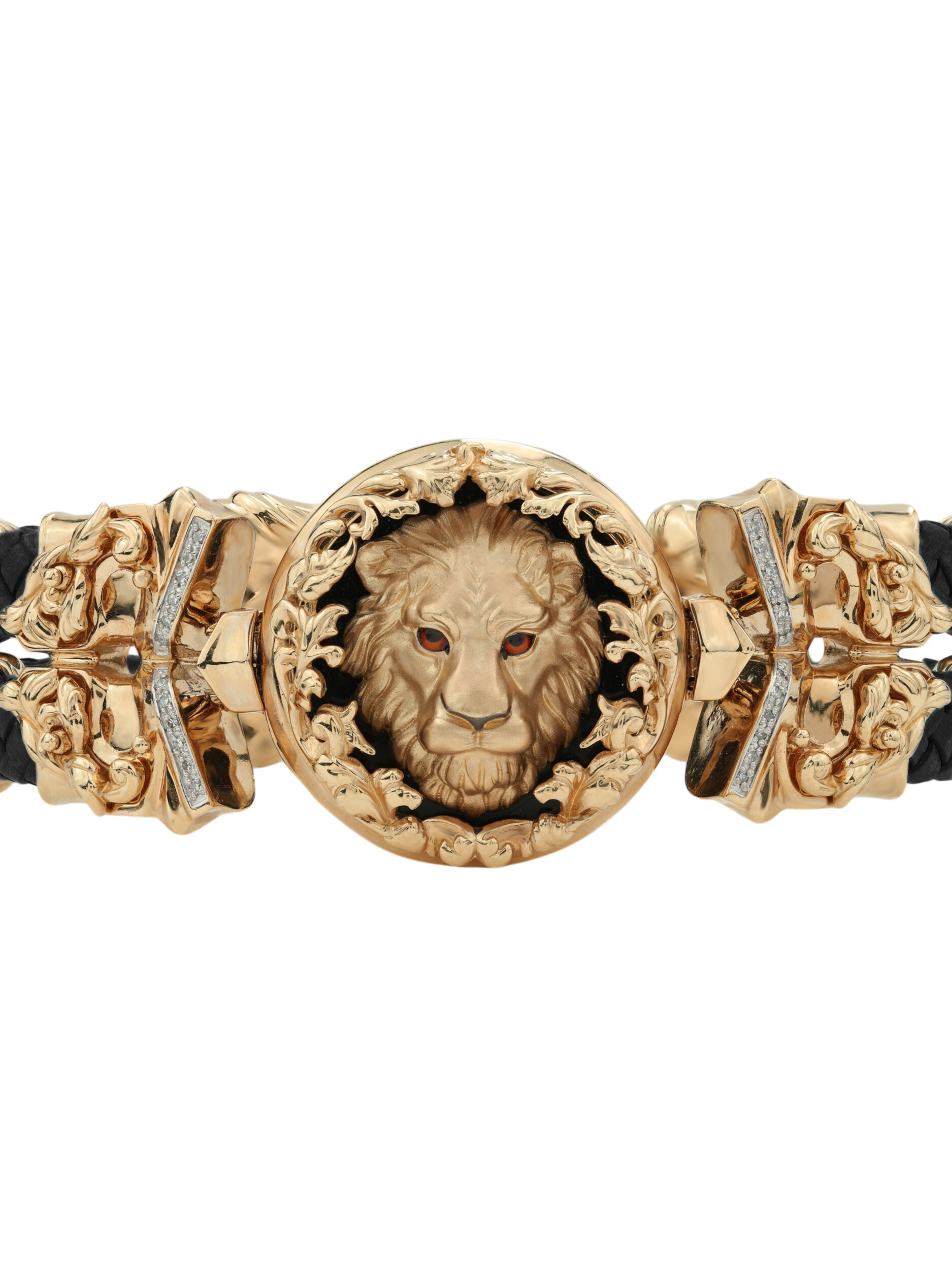 Браслет из золота c эмалью, бриллиантами, шнурком и ониксом
