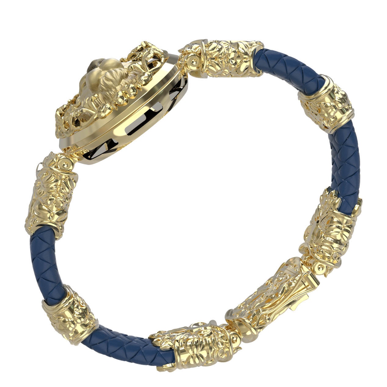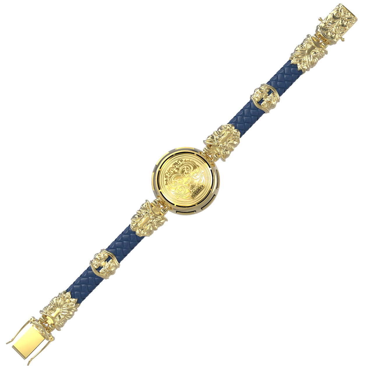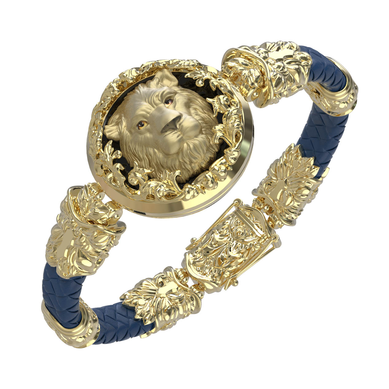 Браслет из лимонного золота c эмалью, кожаным шнурком и ониксом