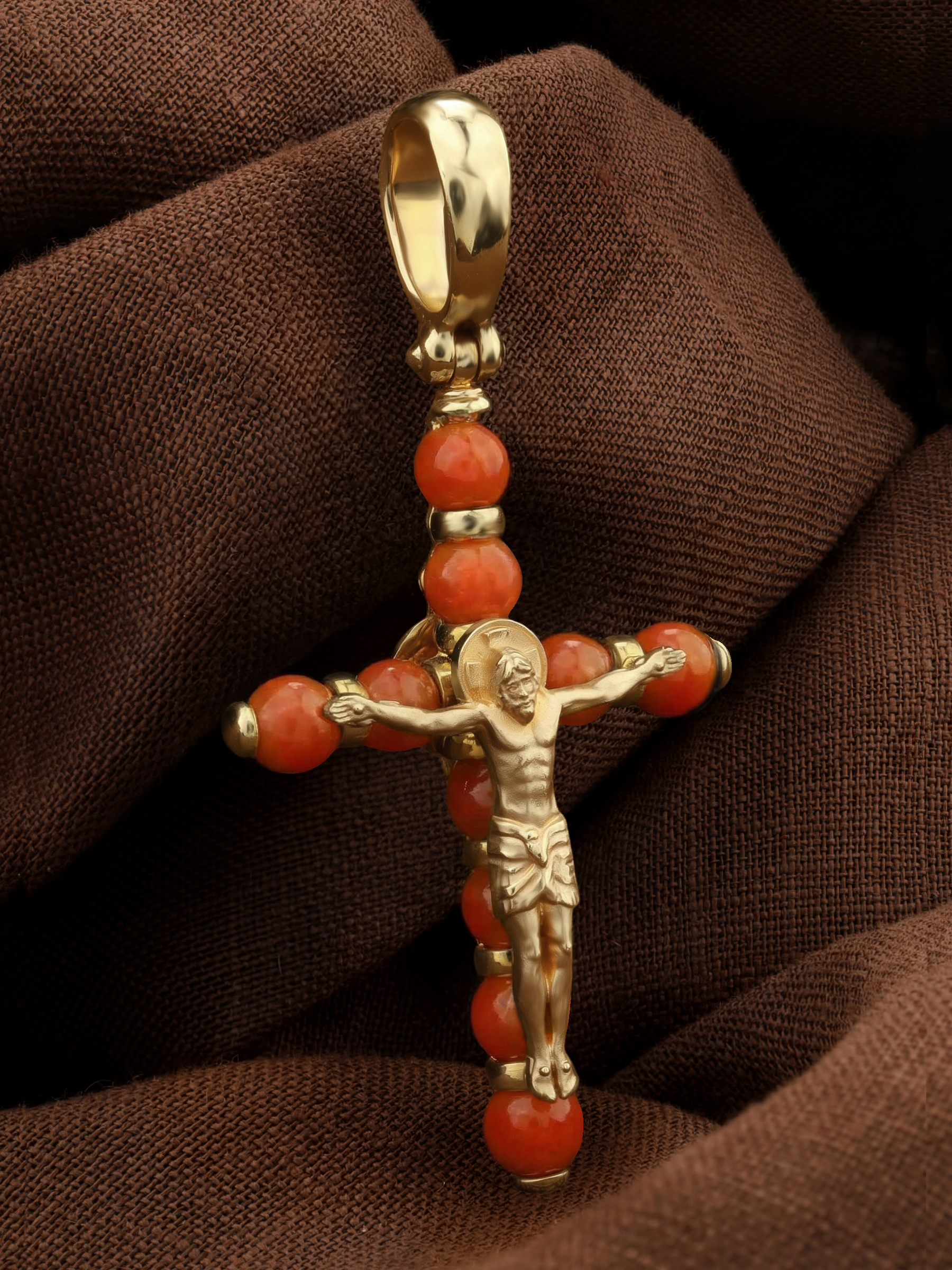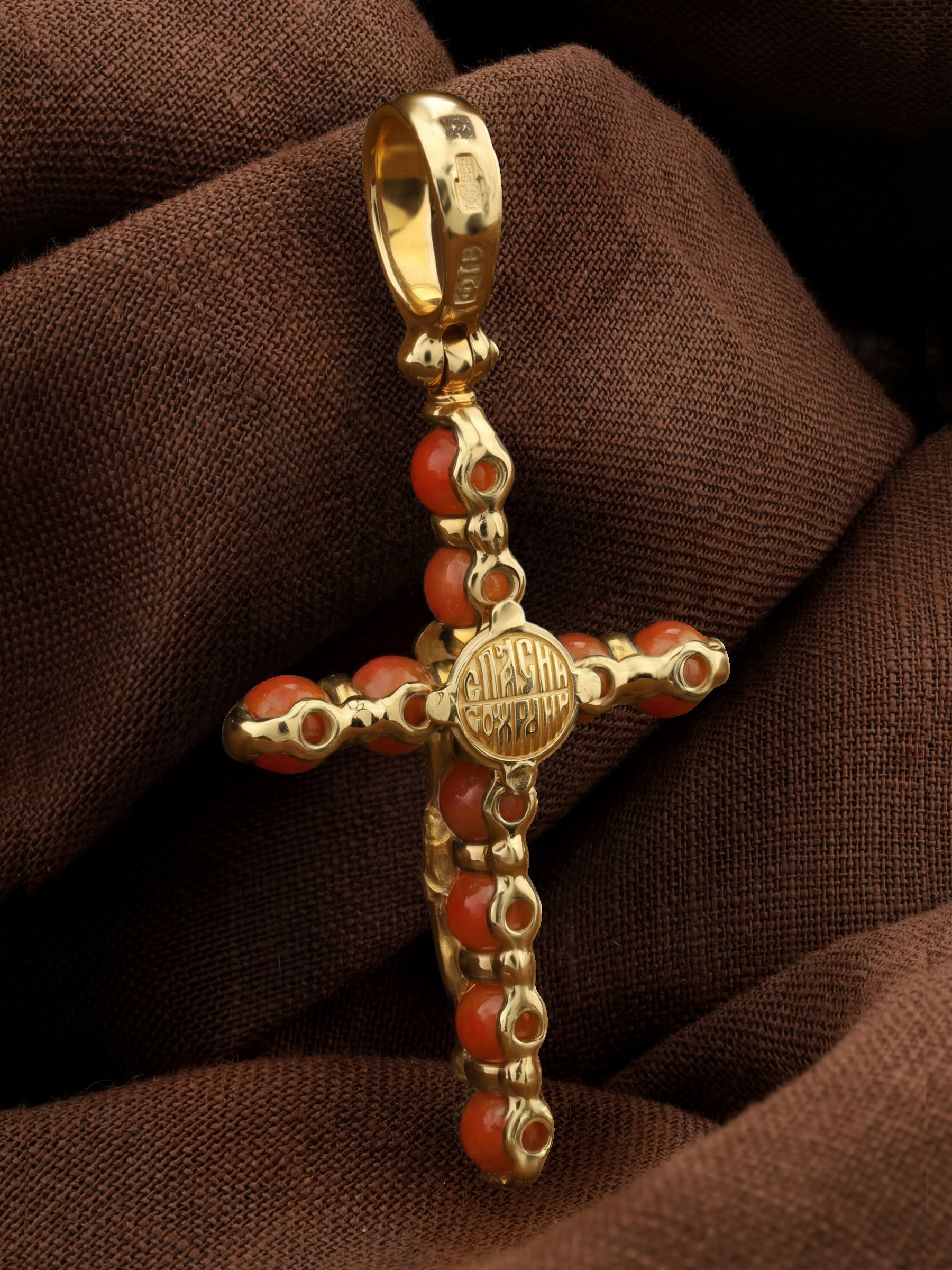 Крест из лимонного золота c кораллом