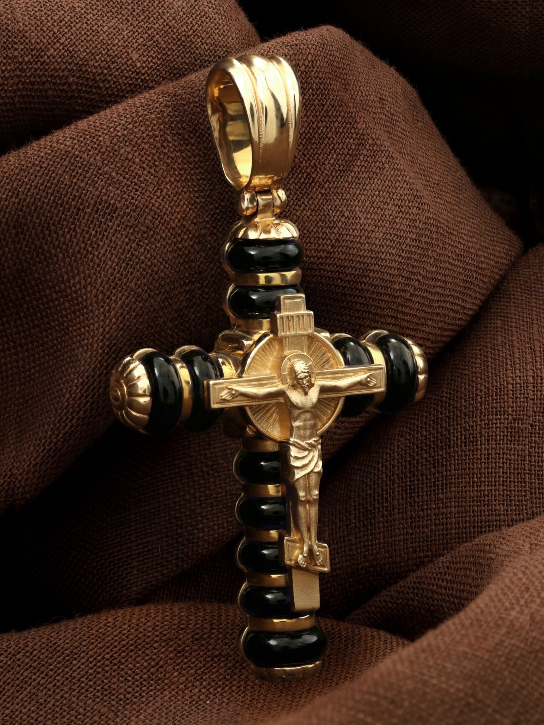 Крест из лимонного золота c ониксом
