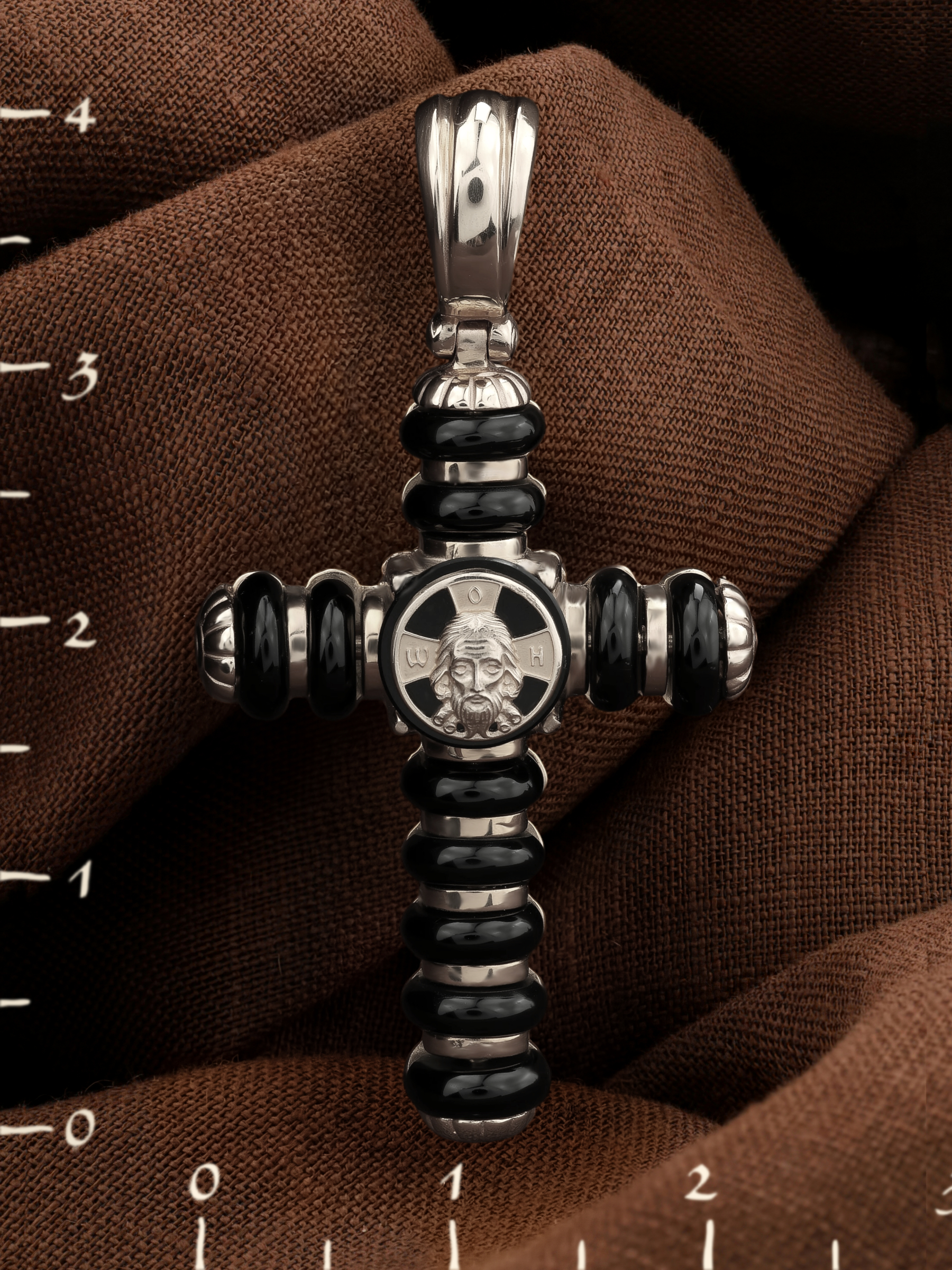 Крест из белого золота c ониксом