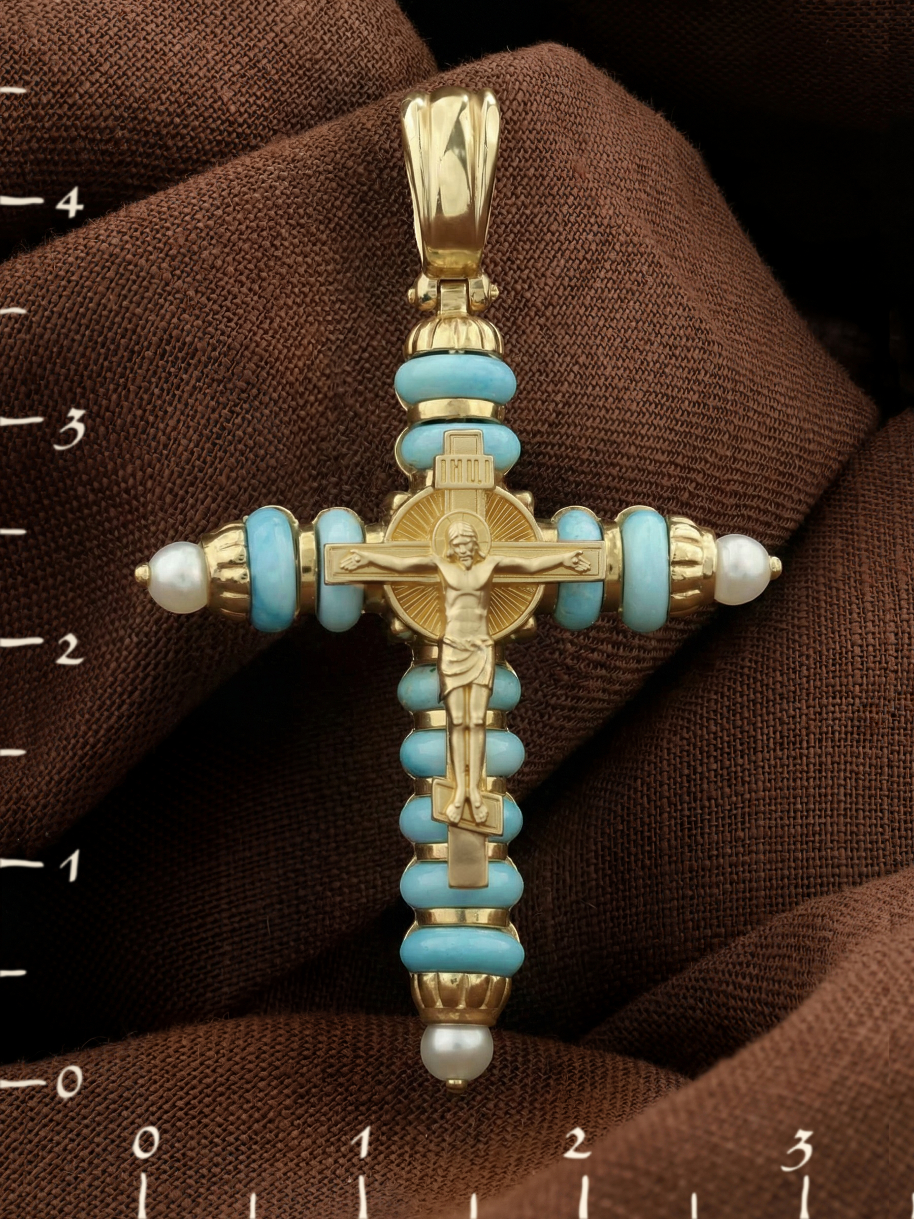 На лицевой стороне креста изображено Распятие Господа и Спасителя нашего Иисуса Христа, отдавшего Себя на смерть для искупления грехов мира. Крест является символом жертвенной любви Всеблагого Бога к падшим людям, всепобеждающим духовным оружием христиан, основанием и средоточием церковной жизни. Над вершиной Распятия помещена надпись «Царь Славы». На верхней перекладине расположена надпись «IНЦI». Она символизирует титло — табличку, на которой, согласно Евангелию, было начертано: Иисус Назорей, Царь Иудейский. Надпись «IC» «ХC»», означает Иисус Христос, помещаются на разных сторонах поперечной перекладины креста. Ниже помещена надпись «НИКА», что означает «победитель».