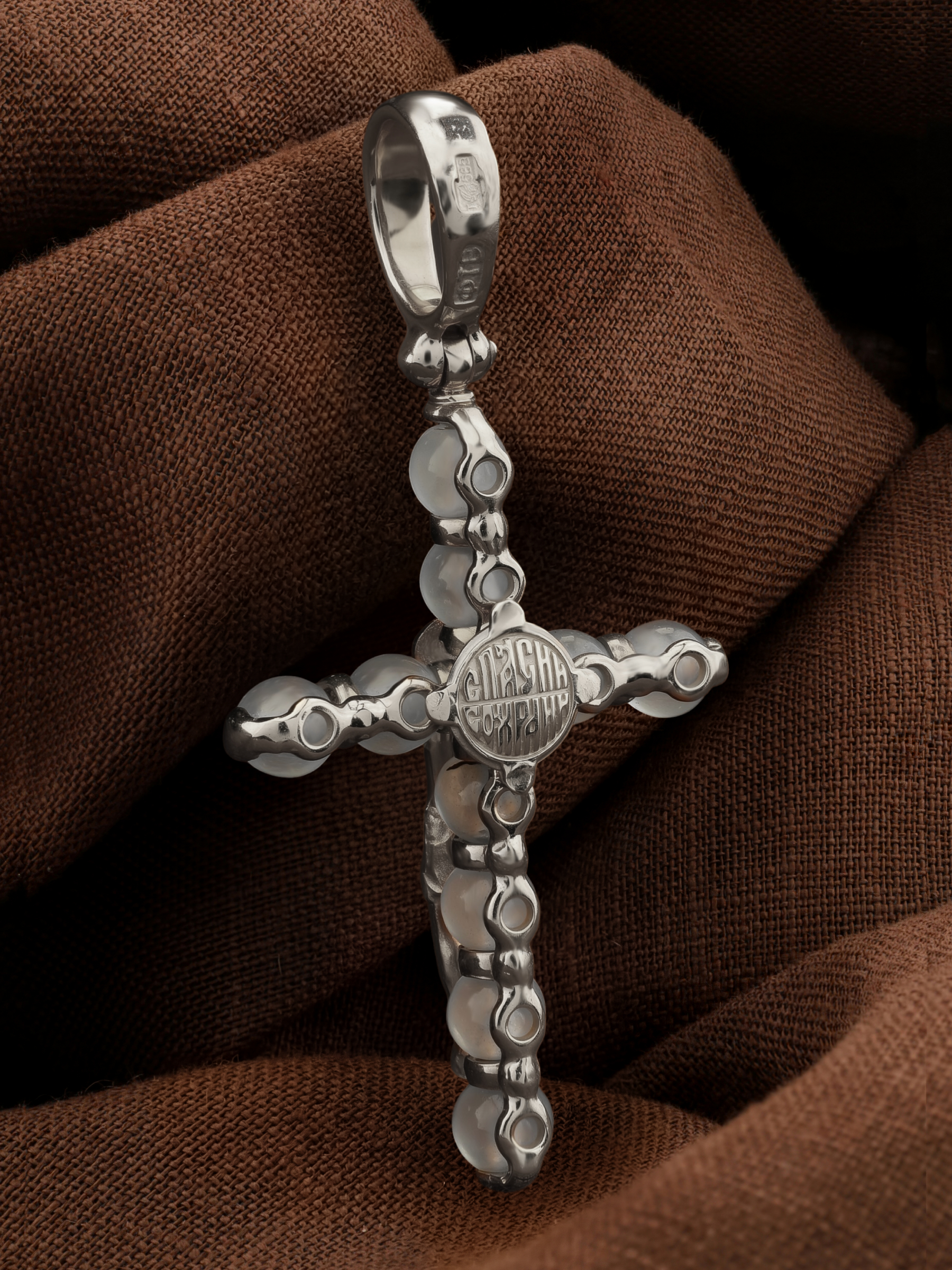 Крест из белого золота c агатом