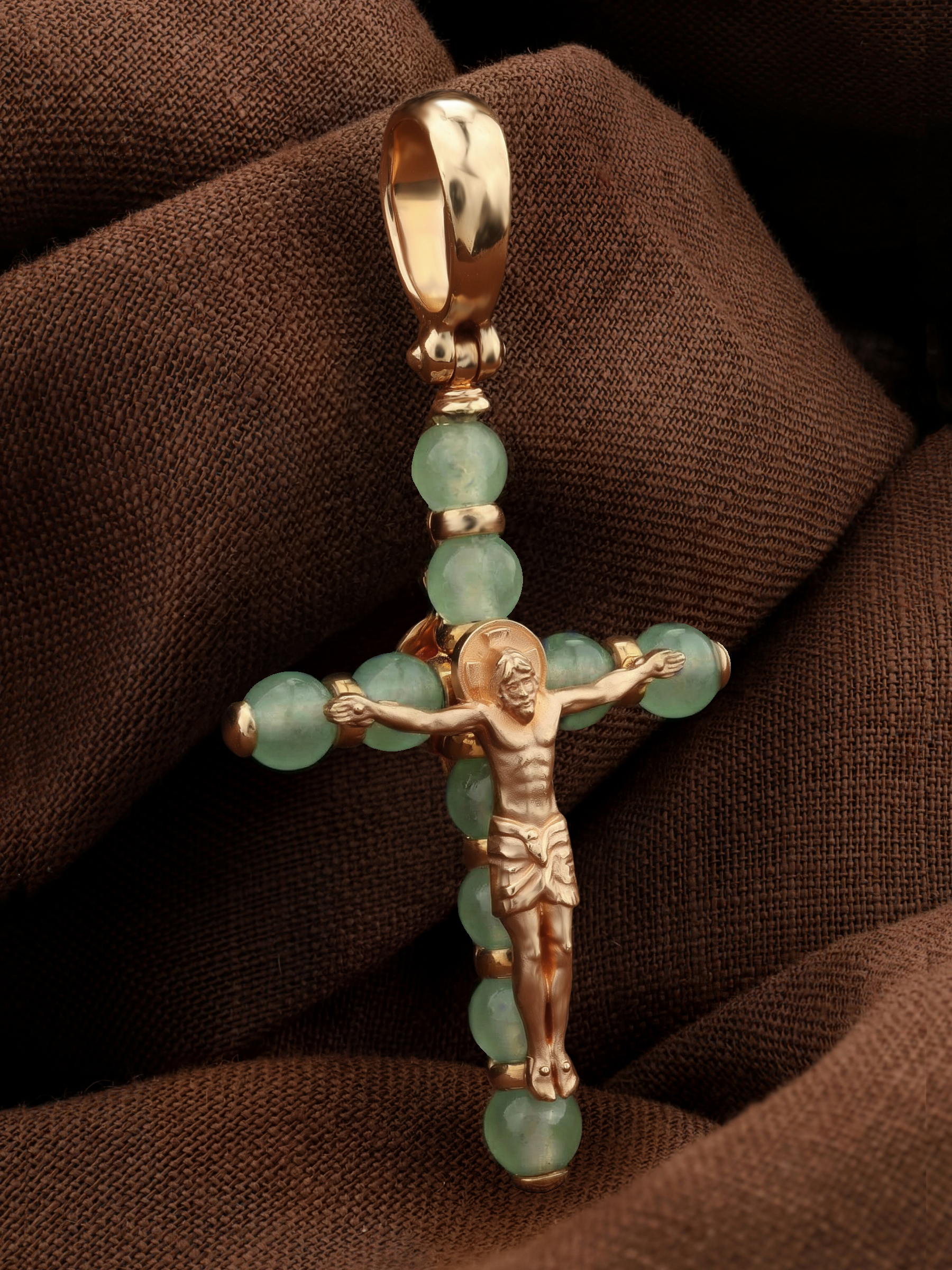 Крест из золота c нефритом