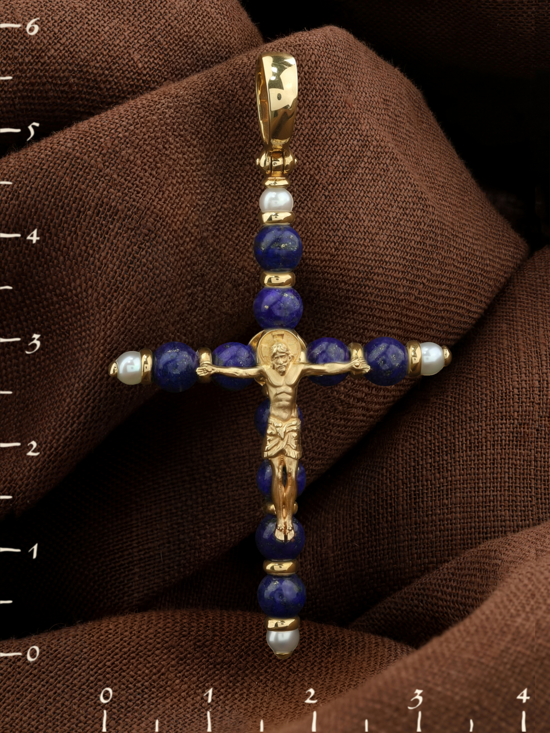 Крест из лимонного золота c жемчугом и лазуритом
