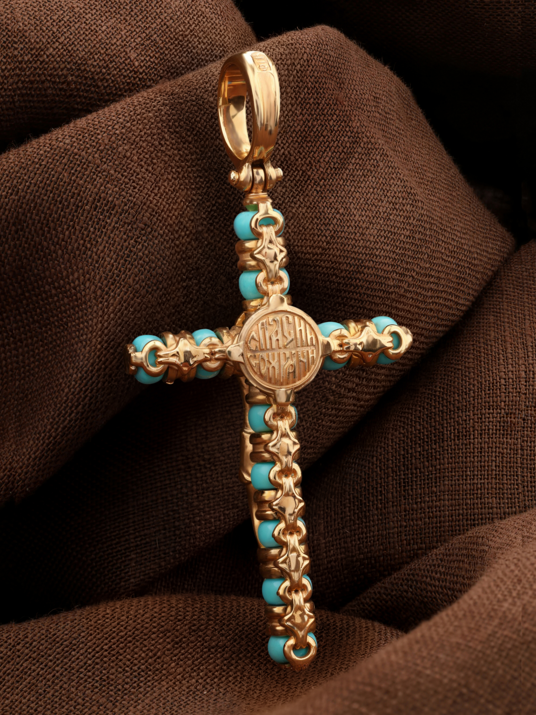 Крест из золота c бирюзой