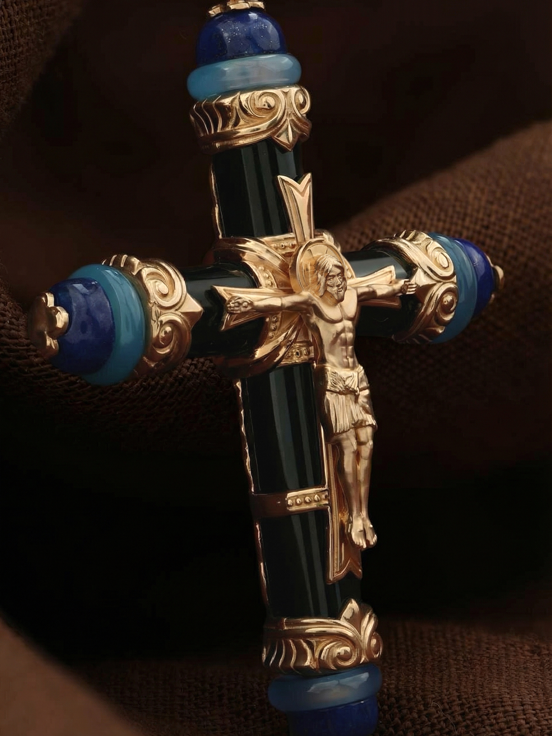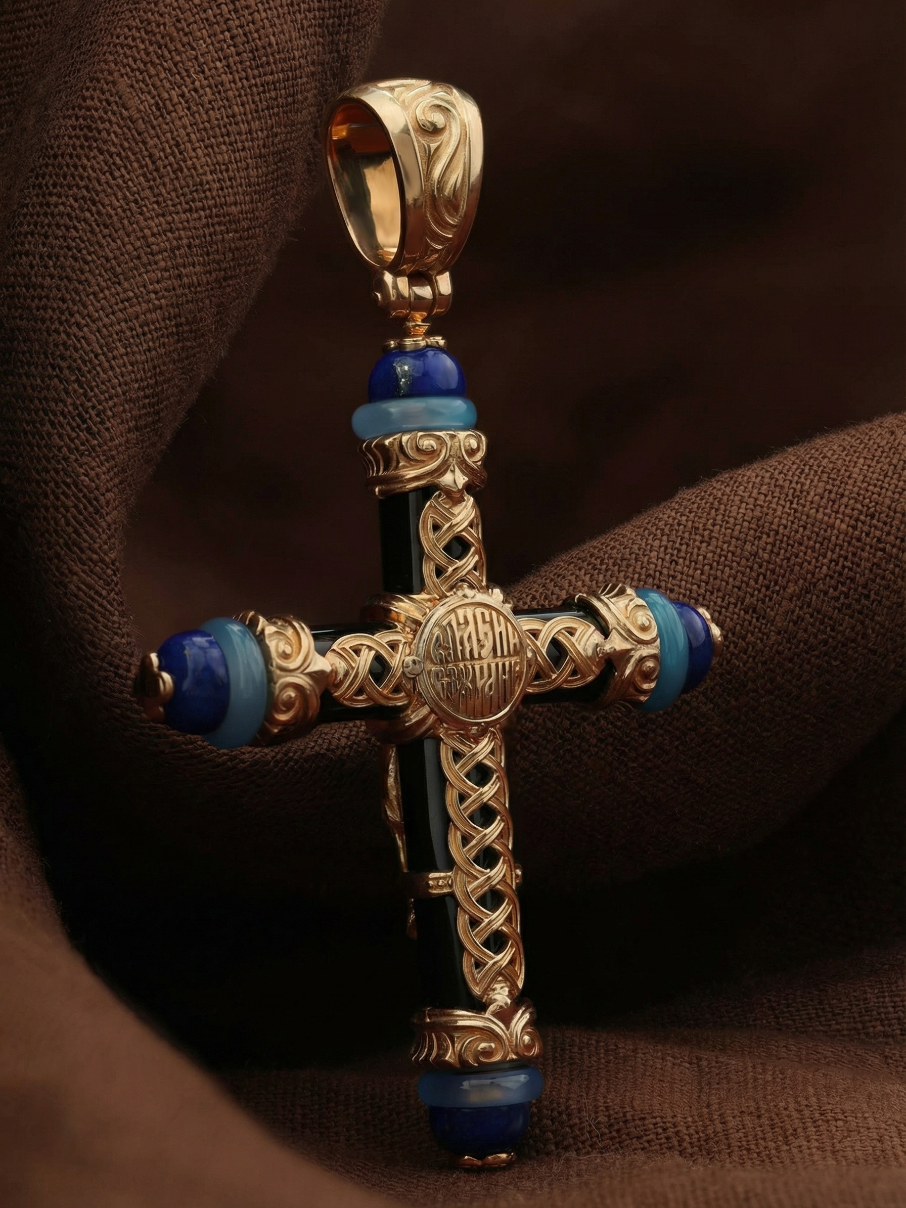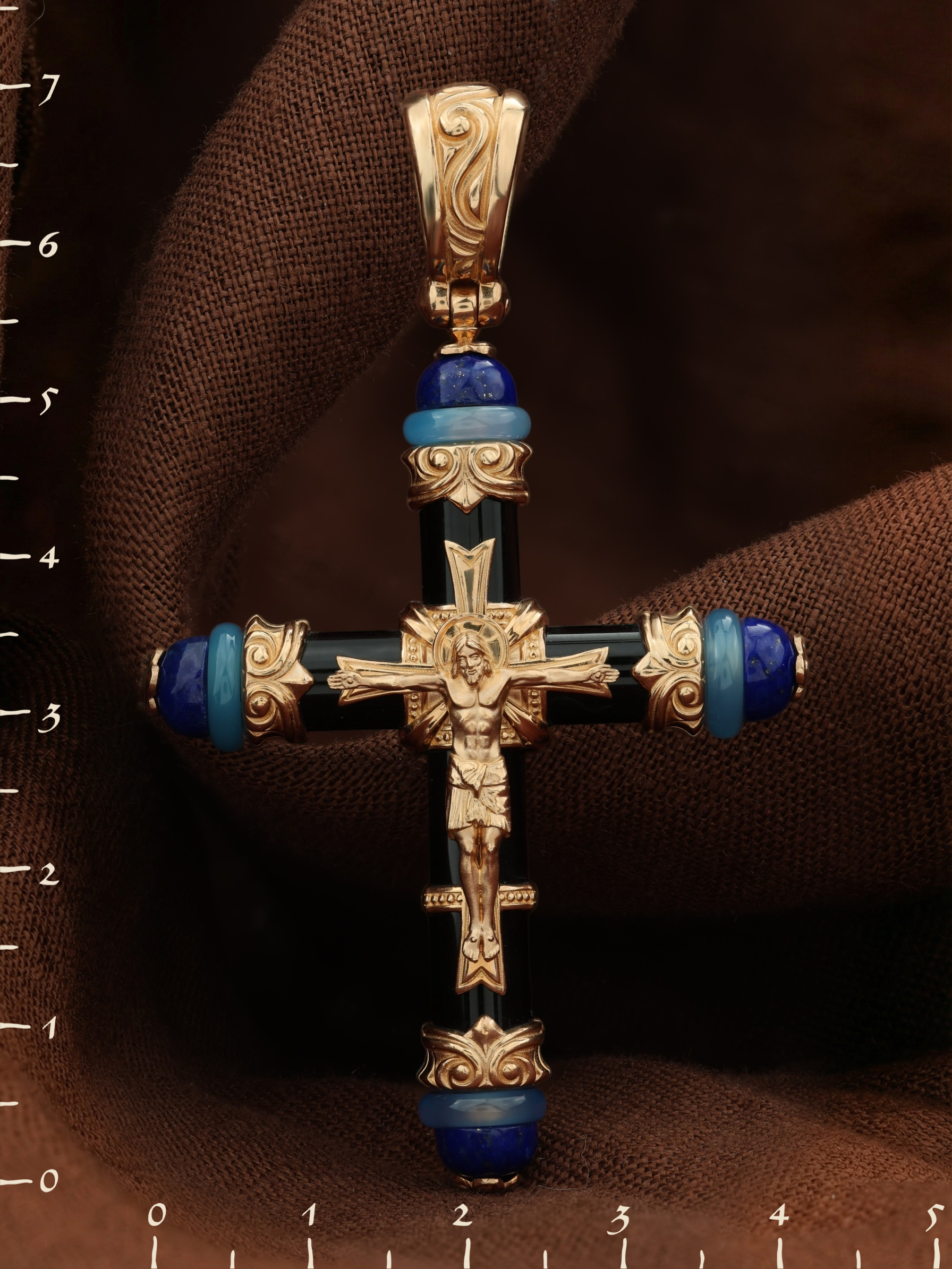 Крест из золота c ониксом, агатом и лазуритом