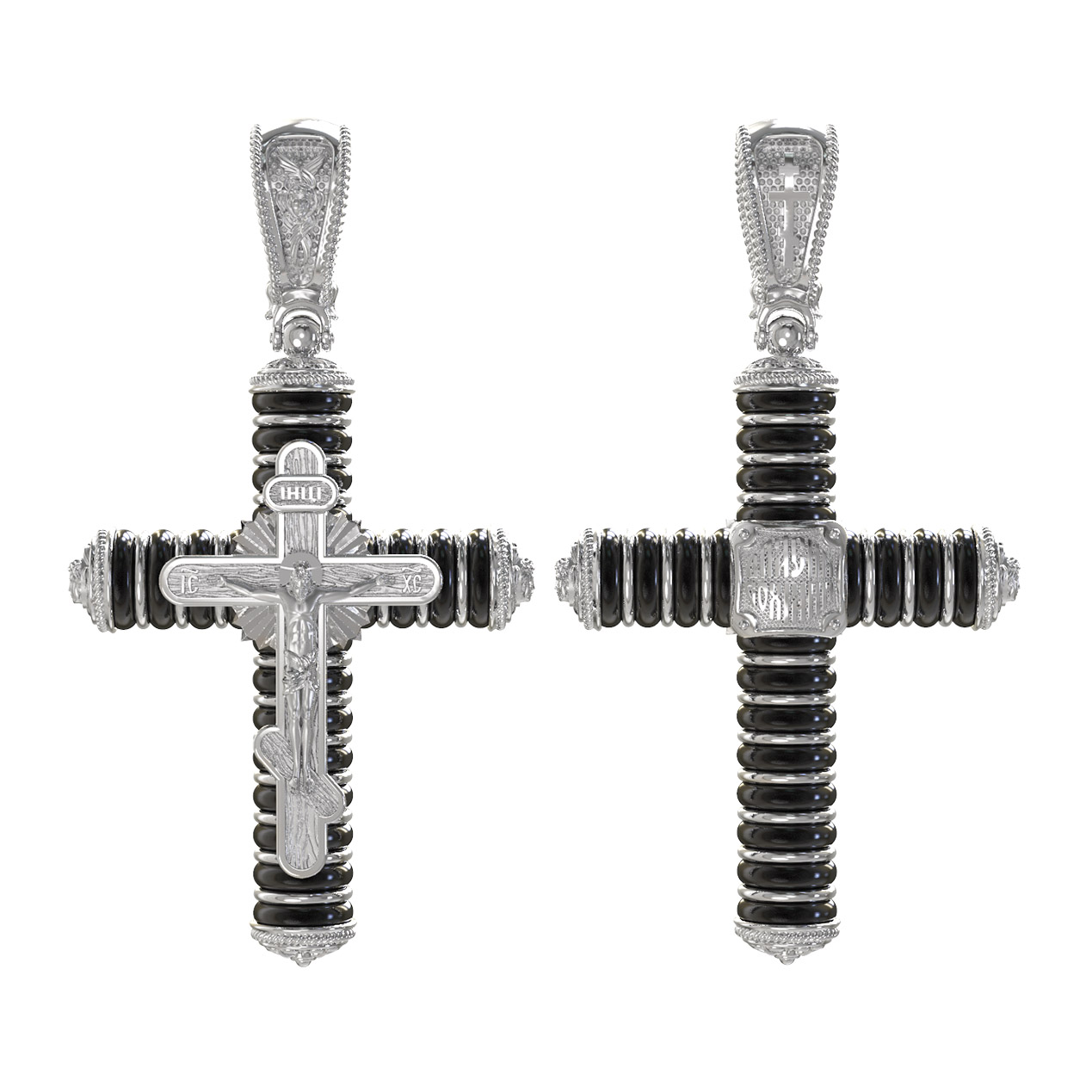 Крест из белого золота c ониксом