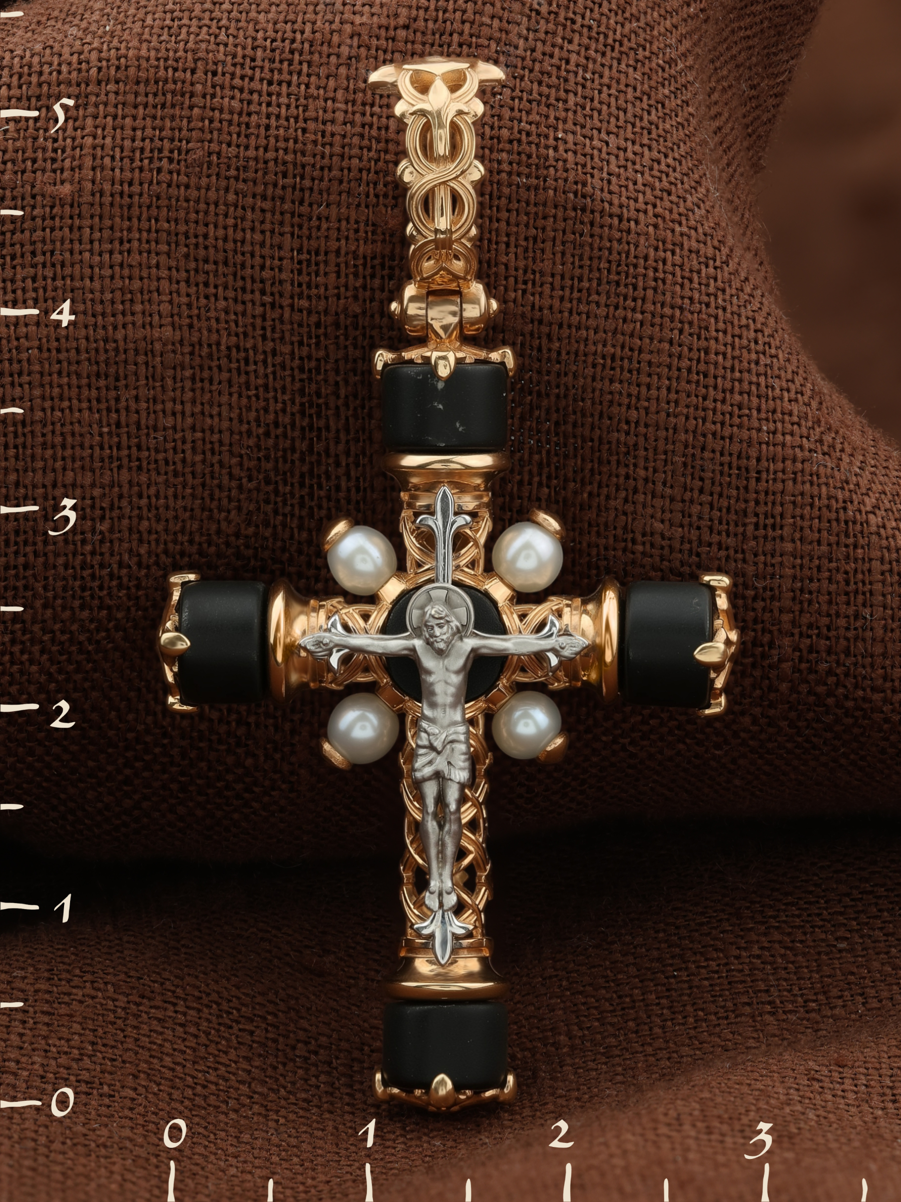 Крест из золота c жемчугом и ониксом