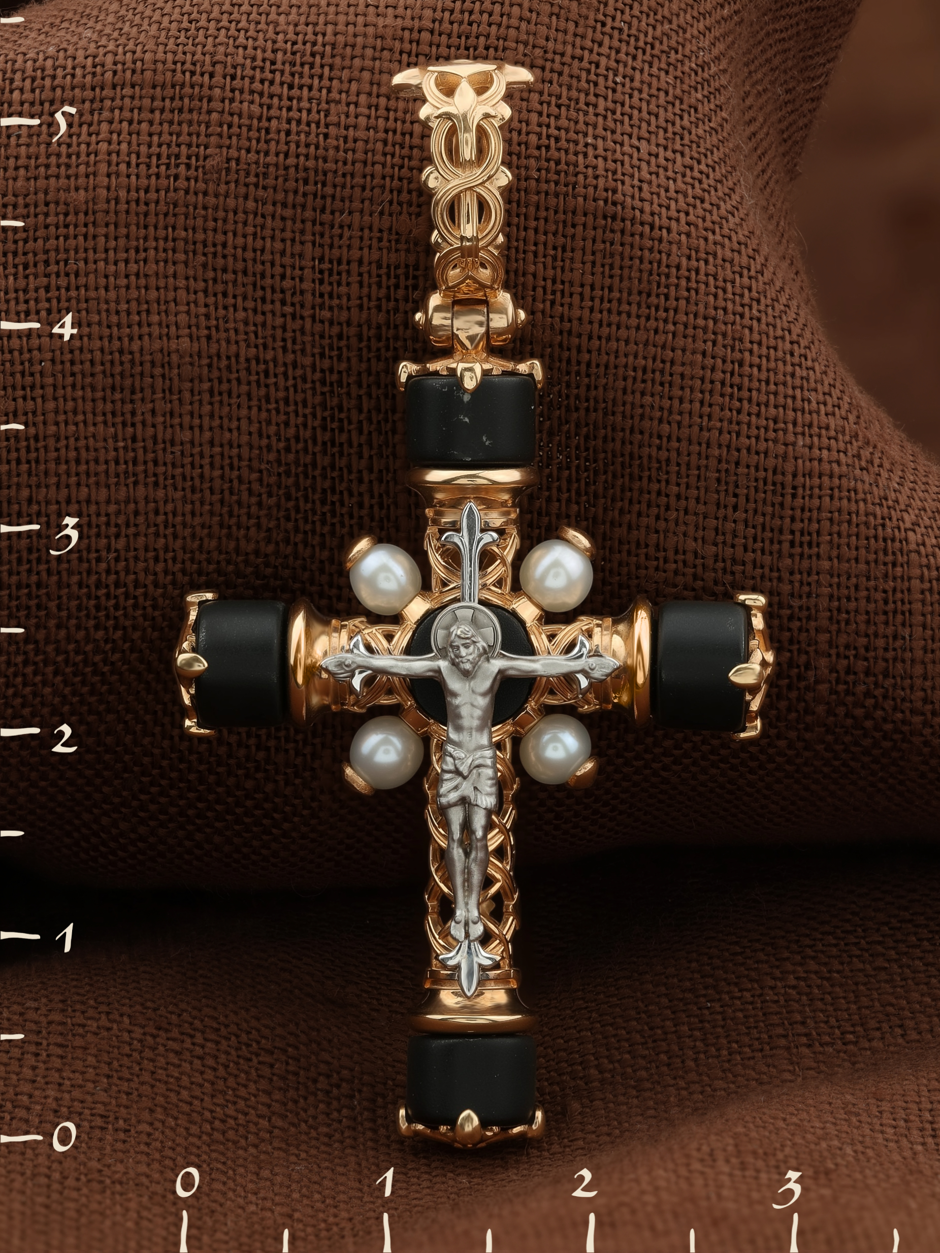 Крест из золота c ониксом и малахитом
