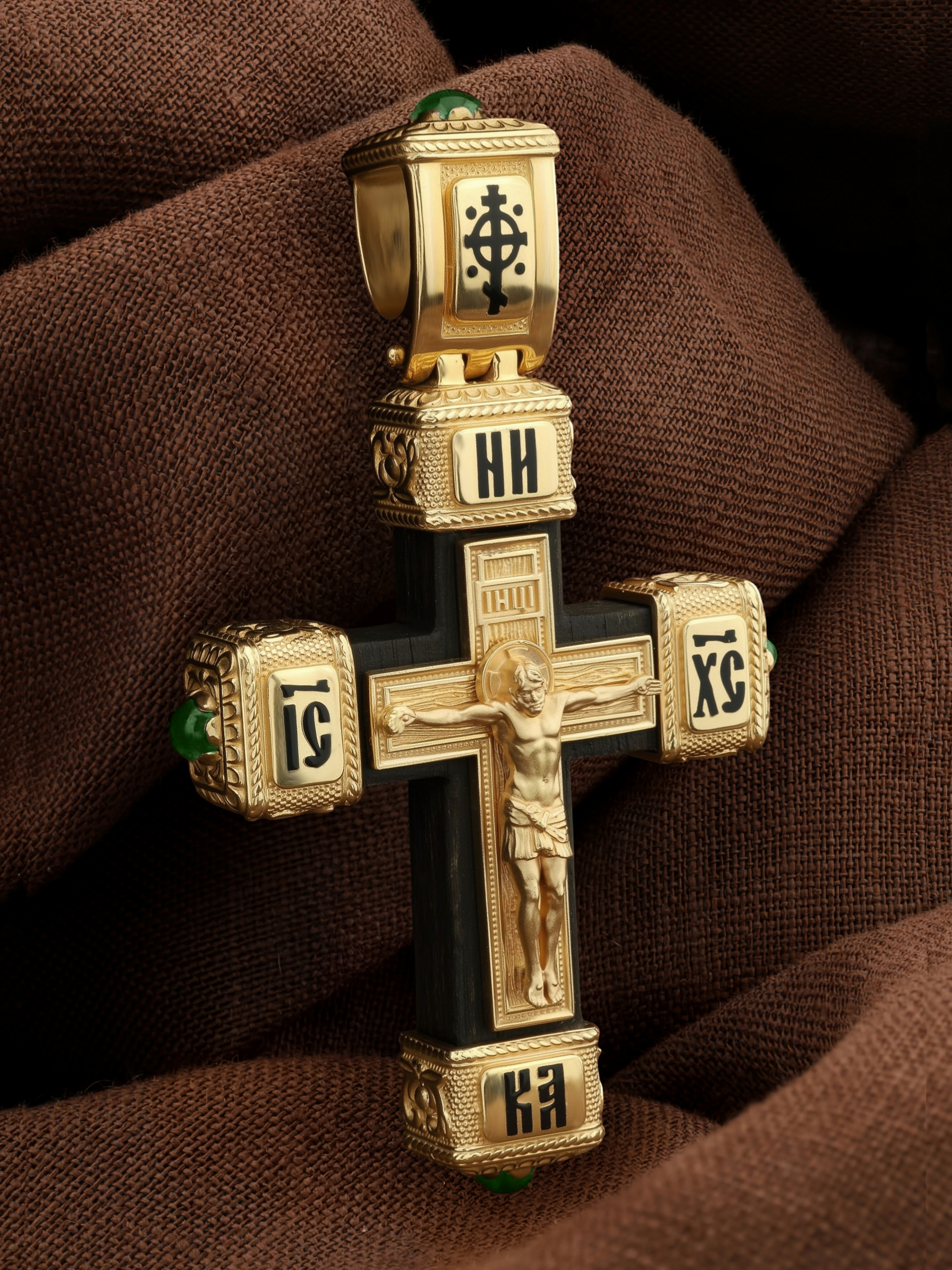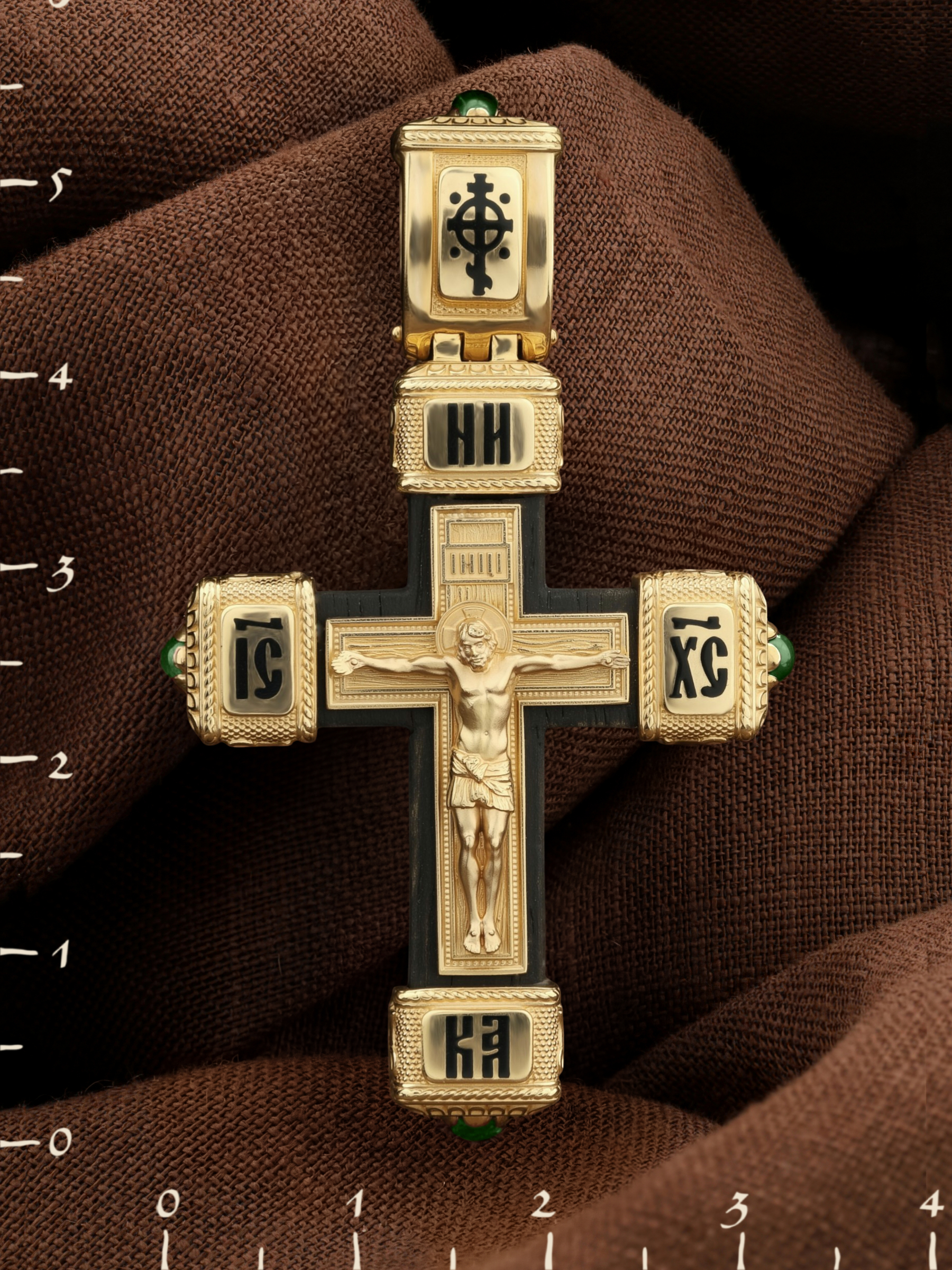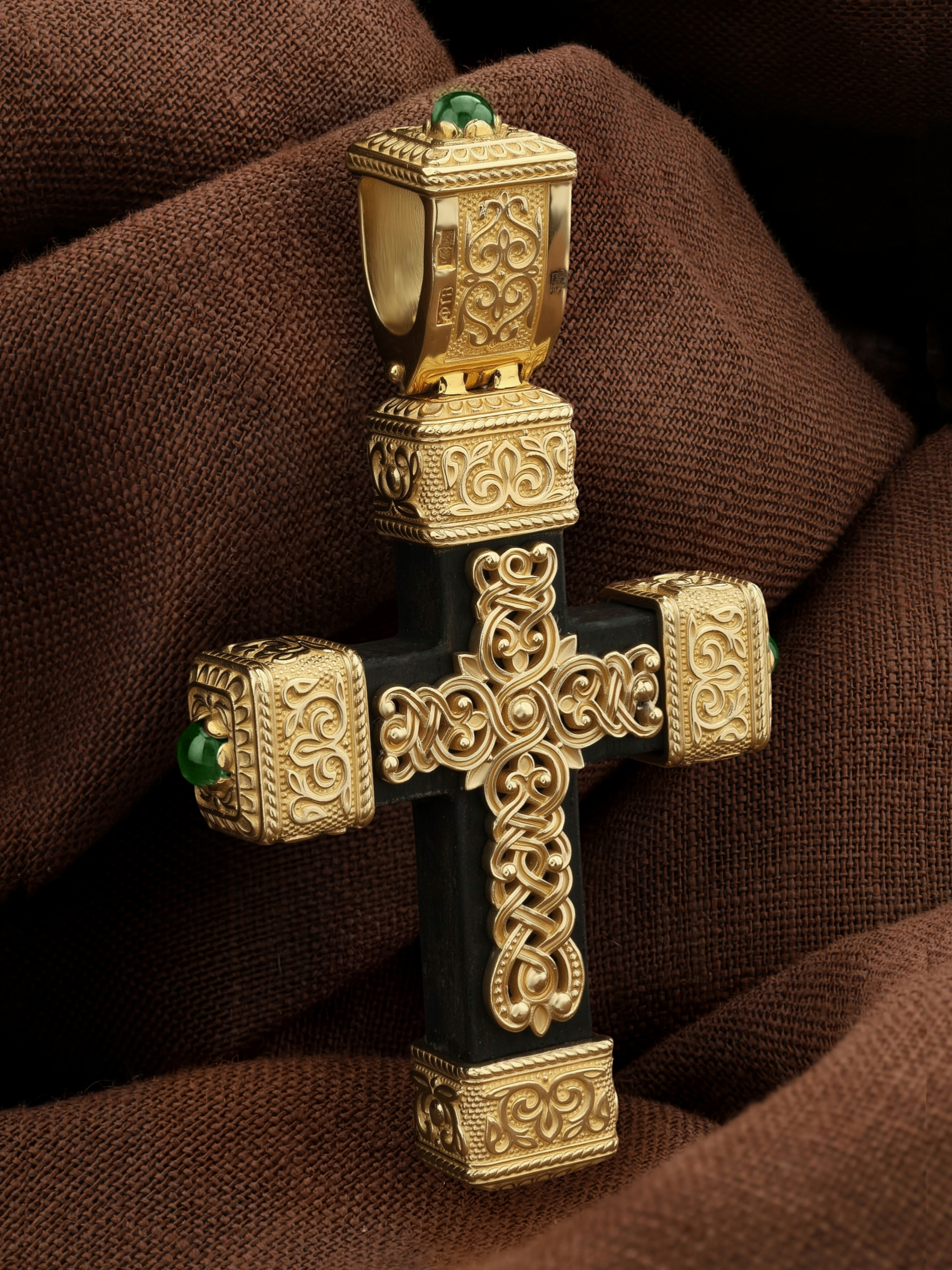 Крест из лимонного золота c эмалью, хризопразом и эбеновым деревом