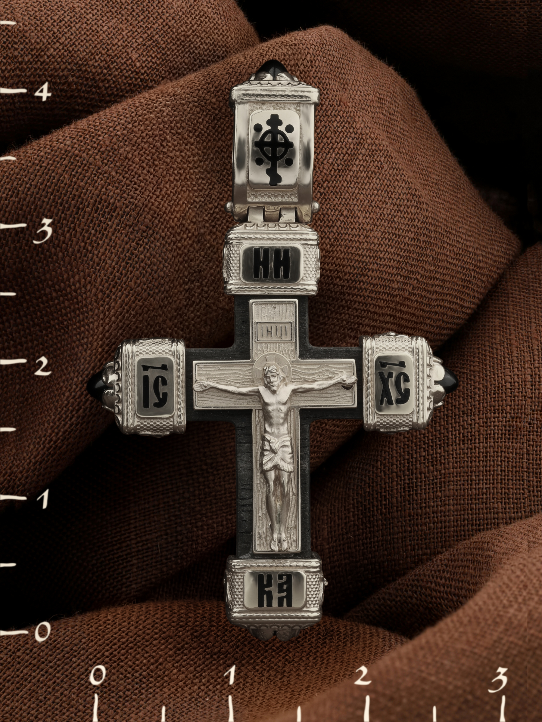 Крест из белого золота c эмалью, ониксом и эбеновым деревом