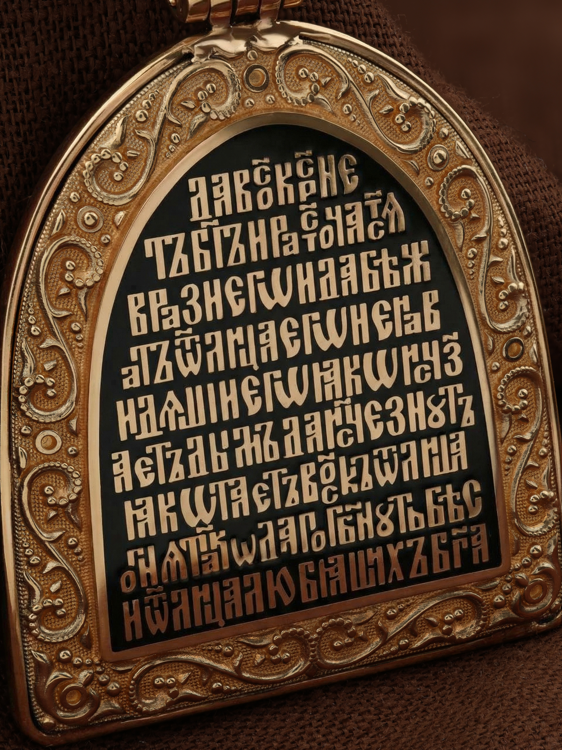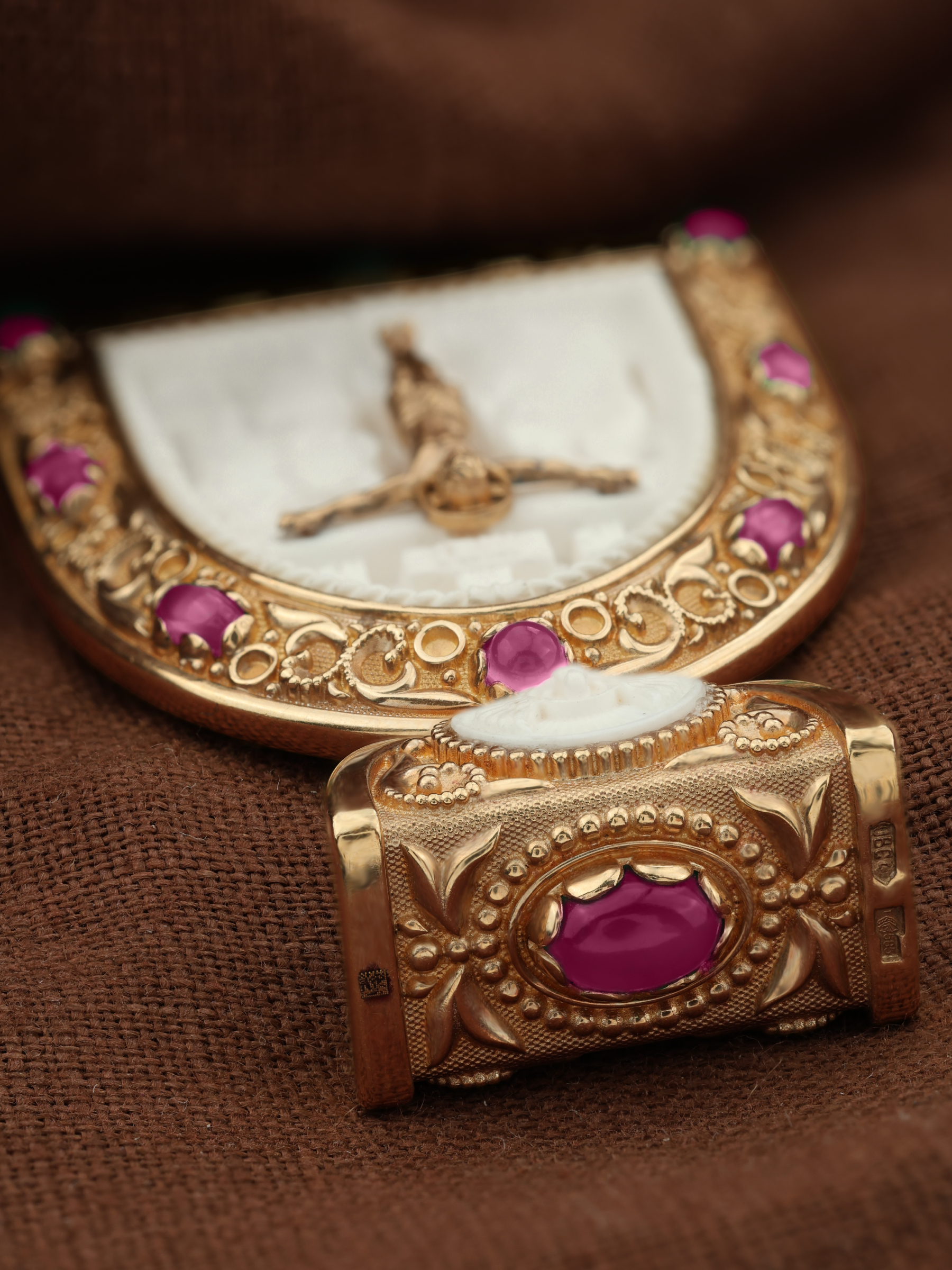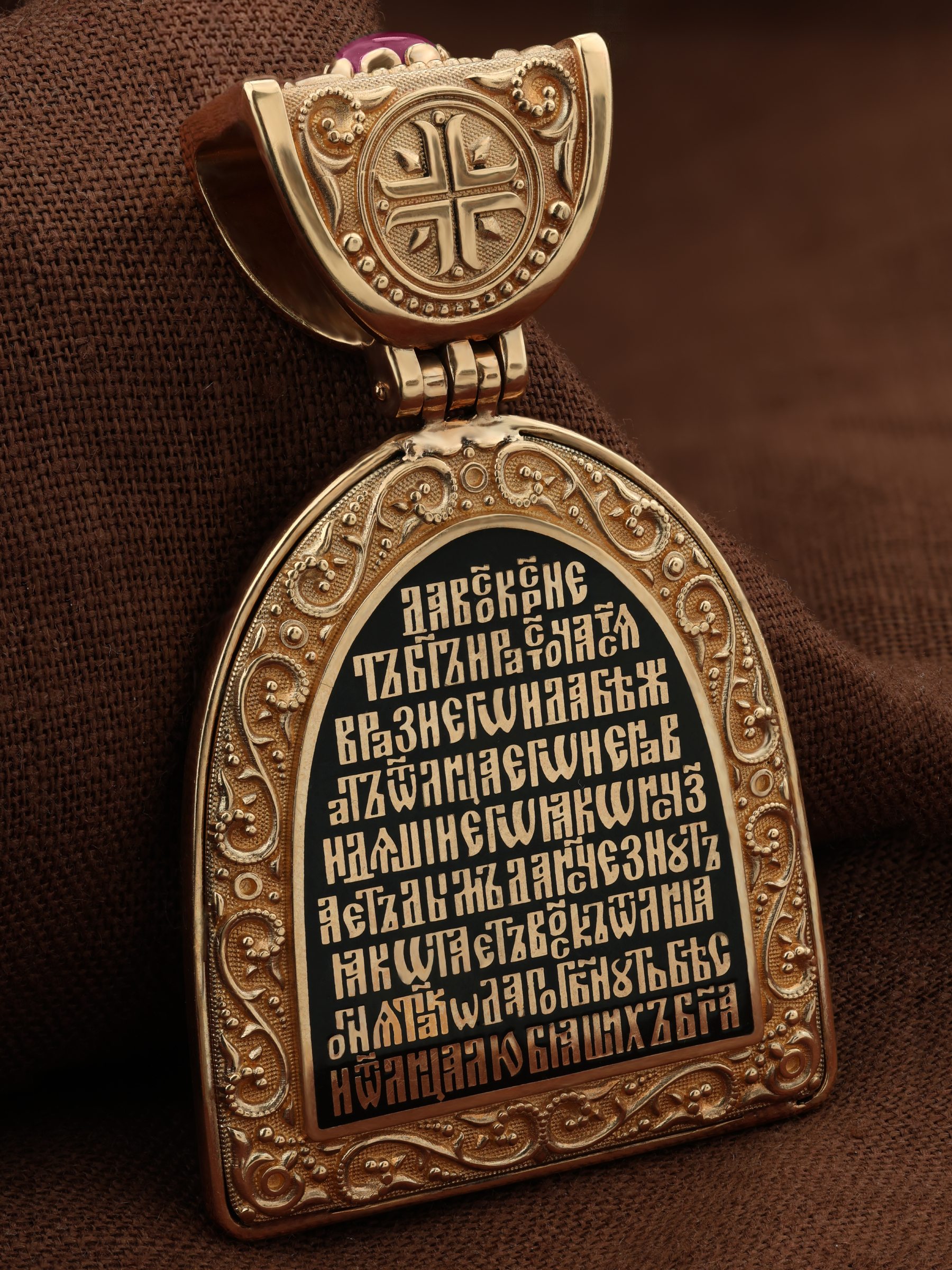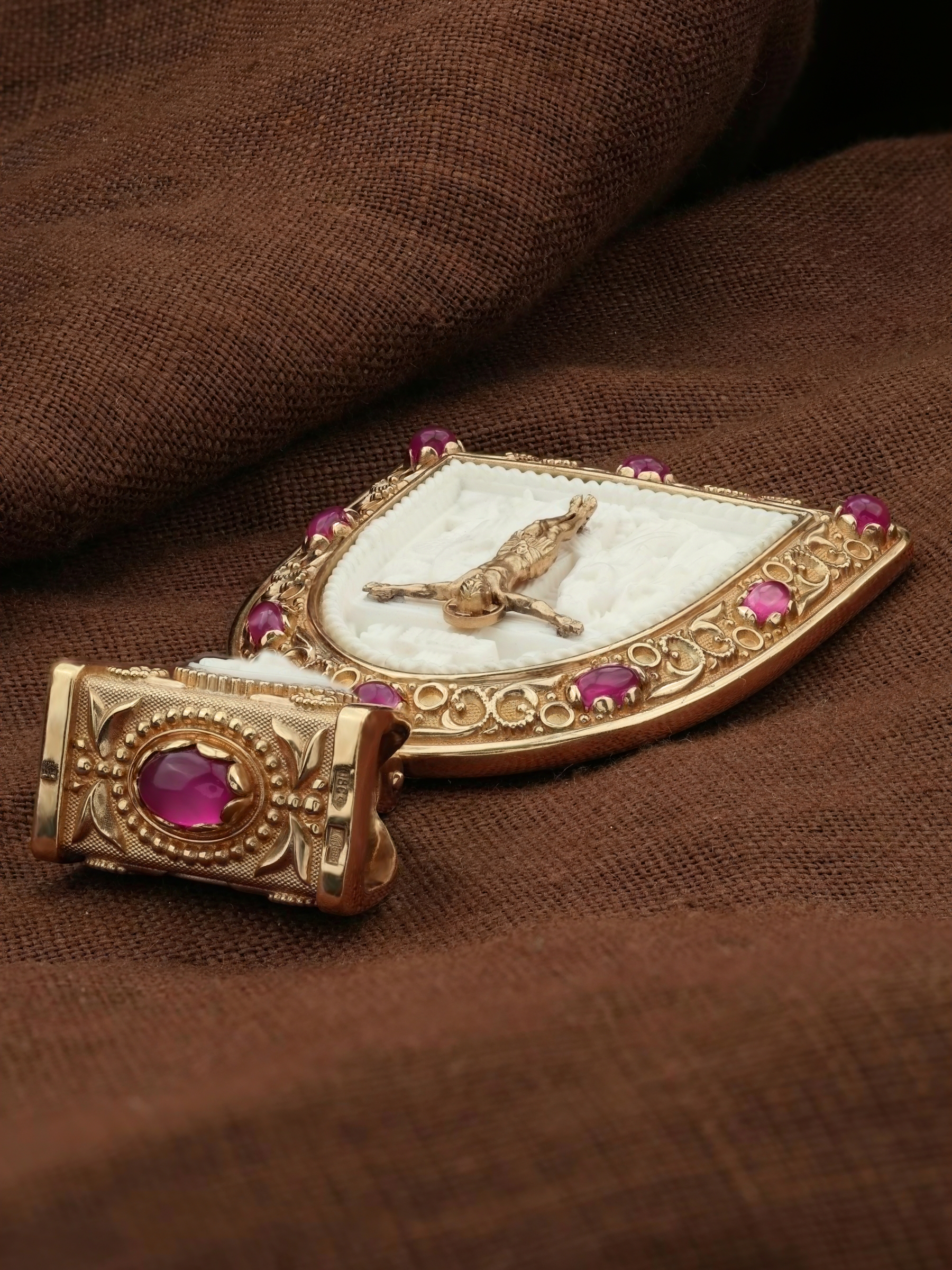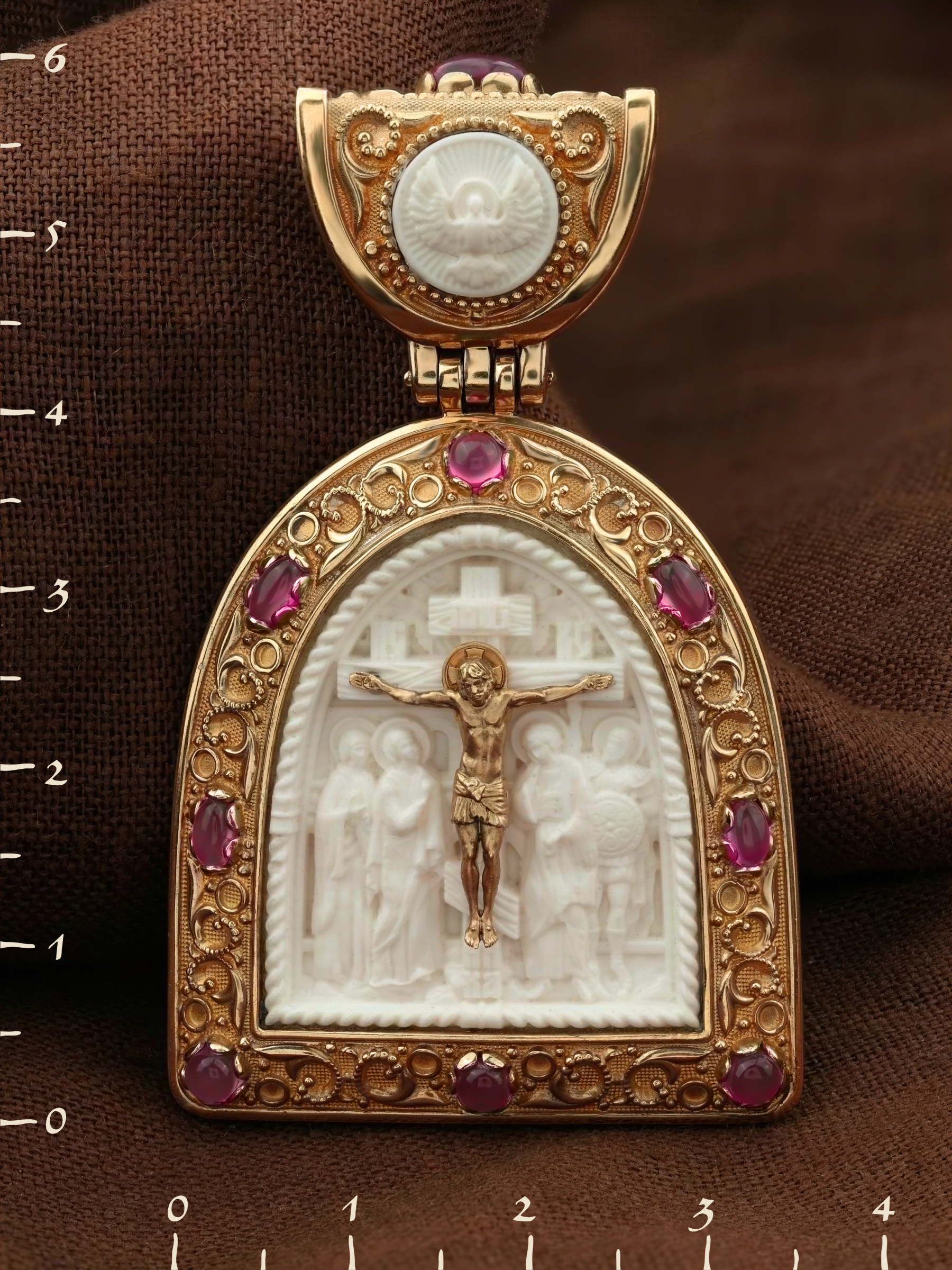 Образок из золота c эмалью, рубином и бивнем мамонта