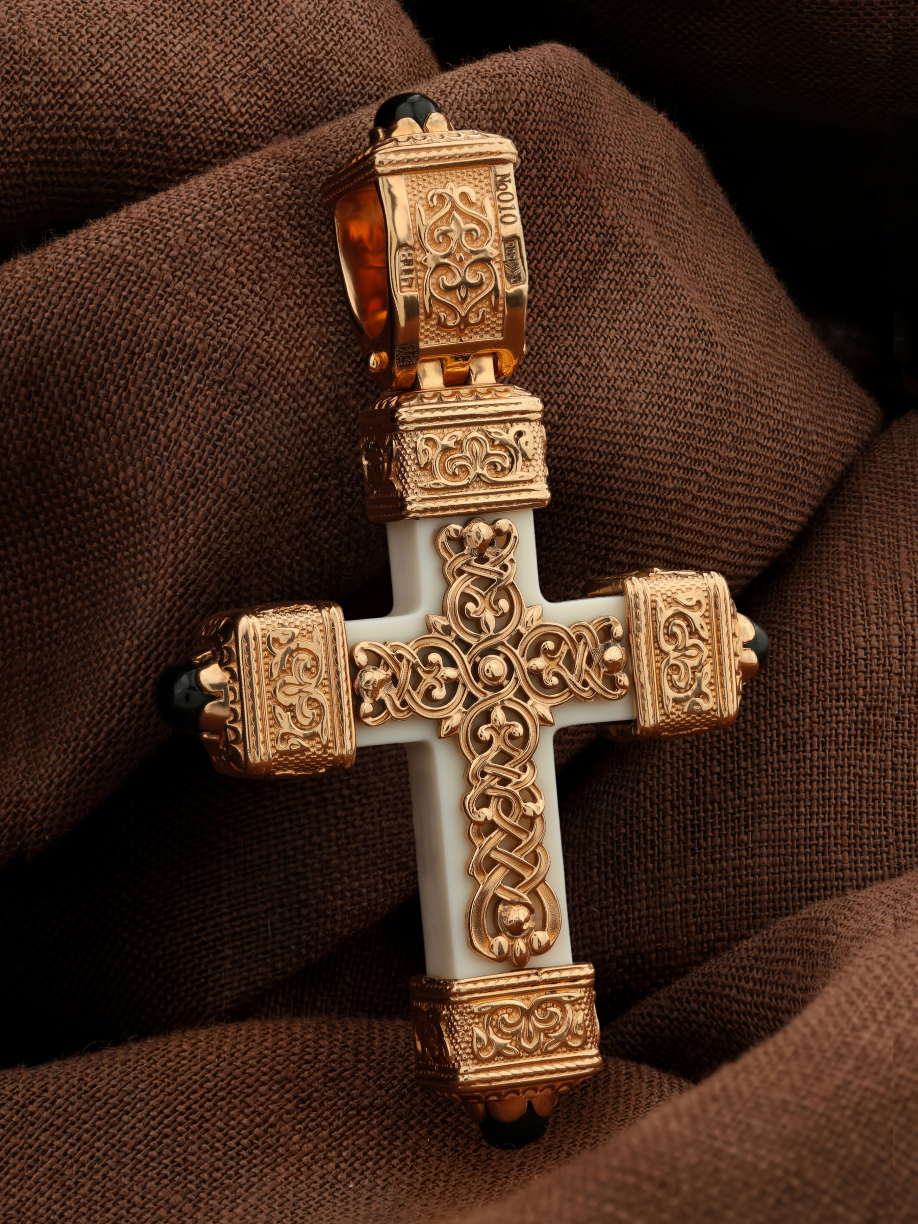 Крест из золота c эмалью, ониксом и бивнем мамонта