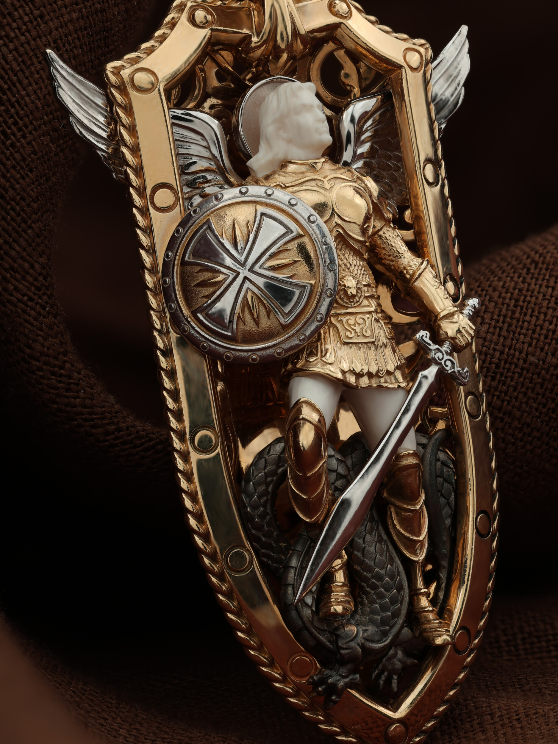 Образок из золота c эмалью и бивнем мамонта