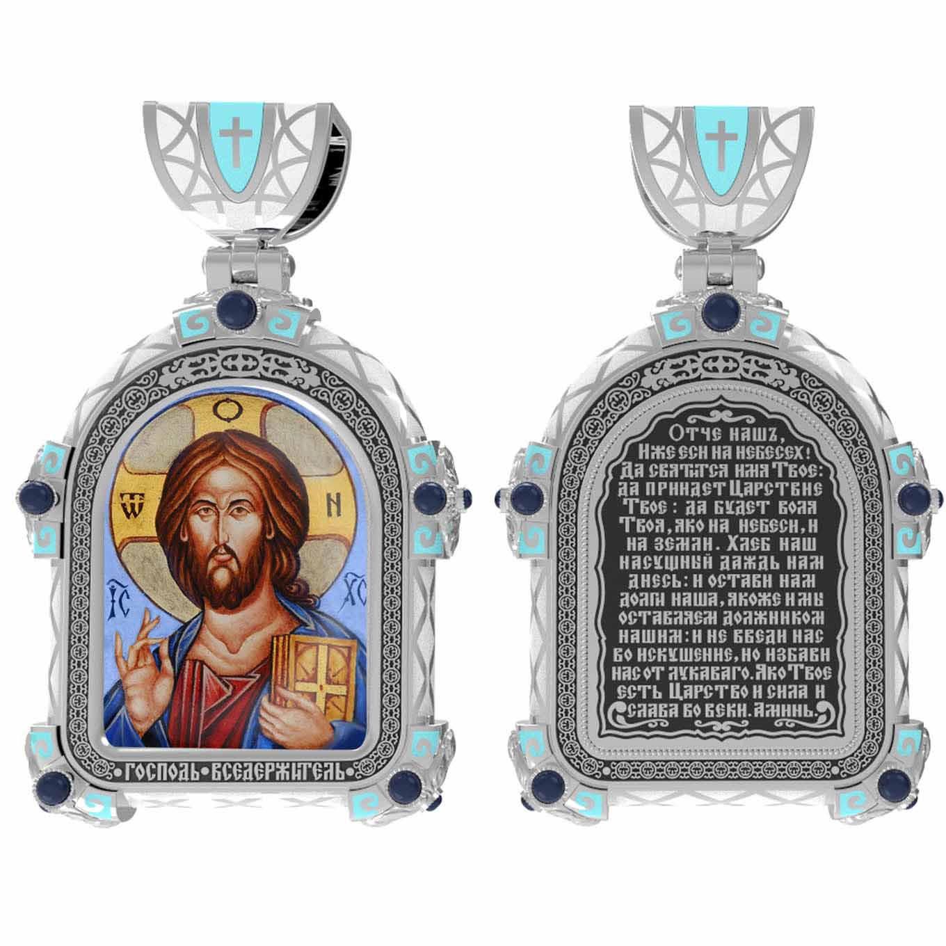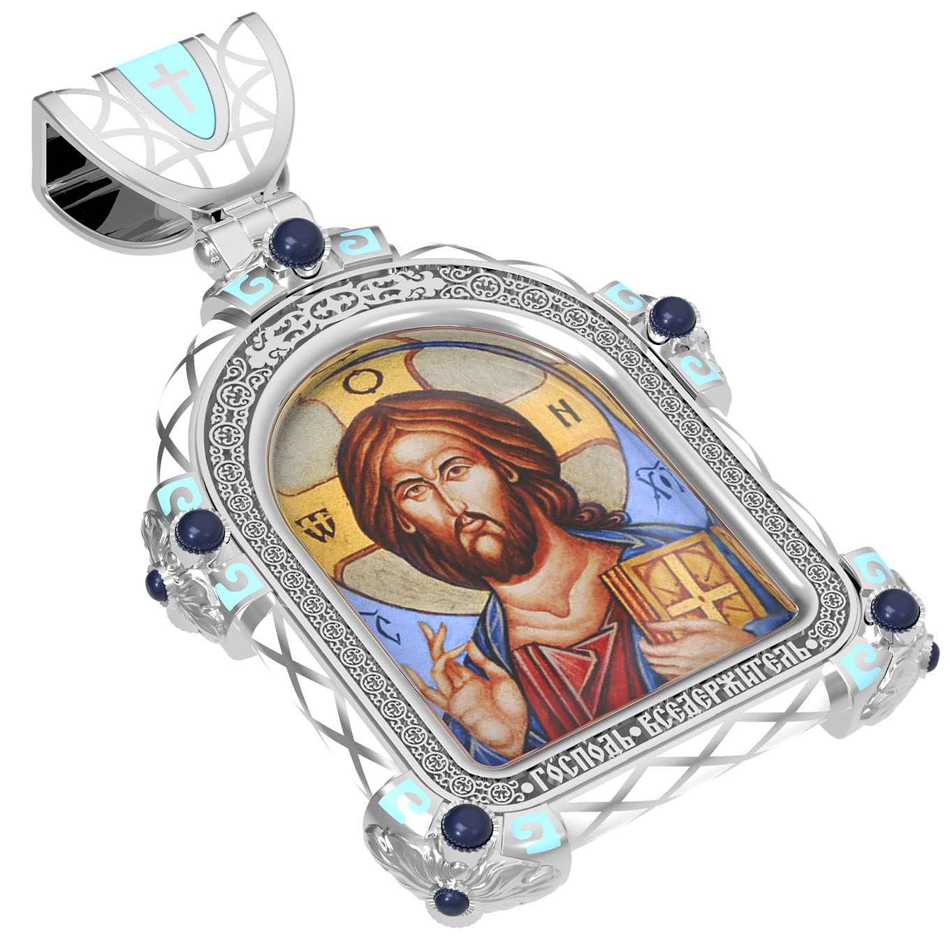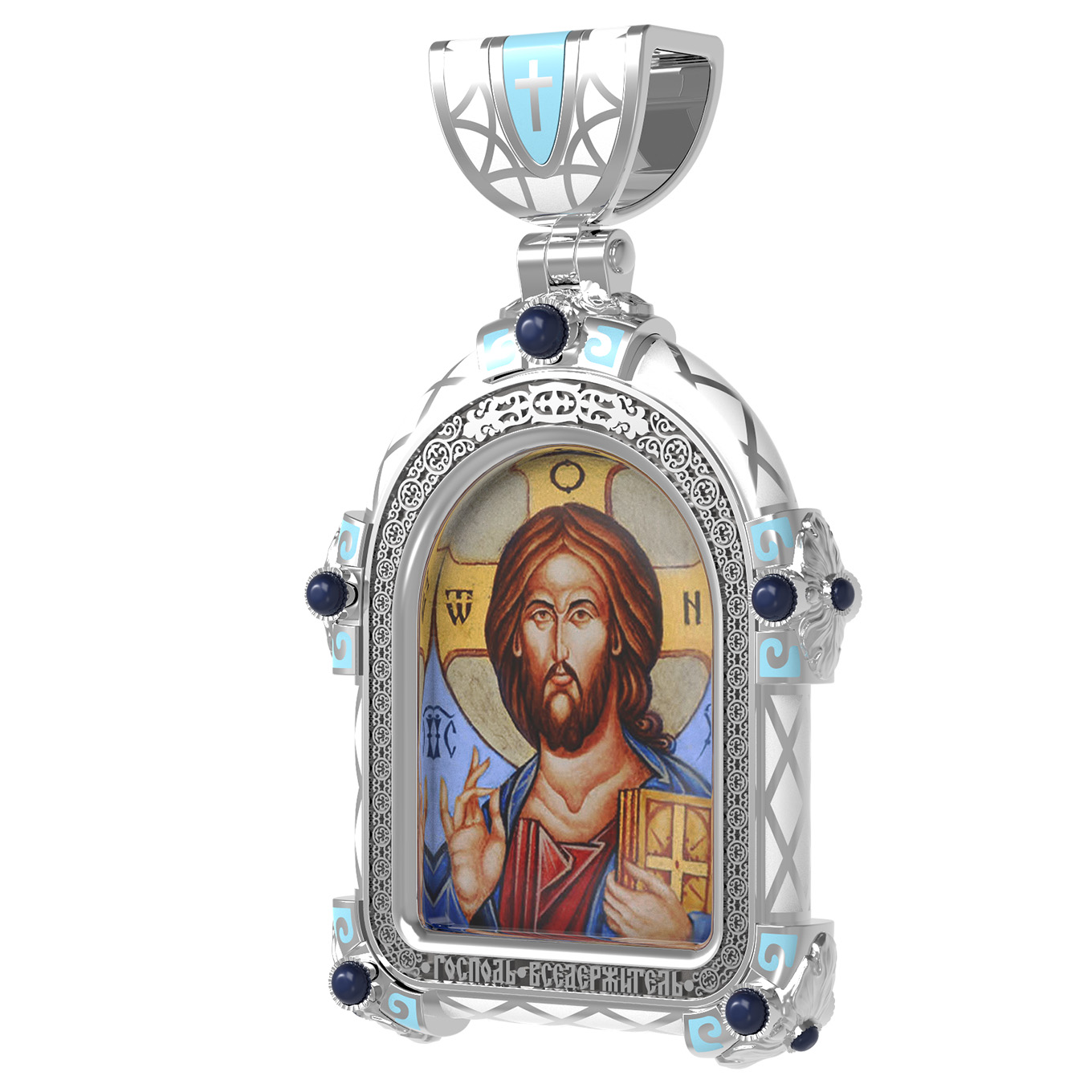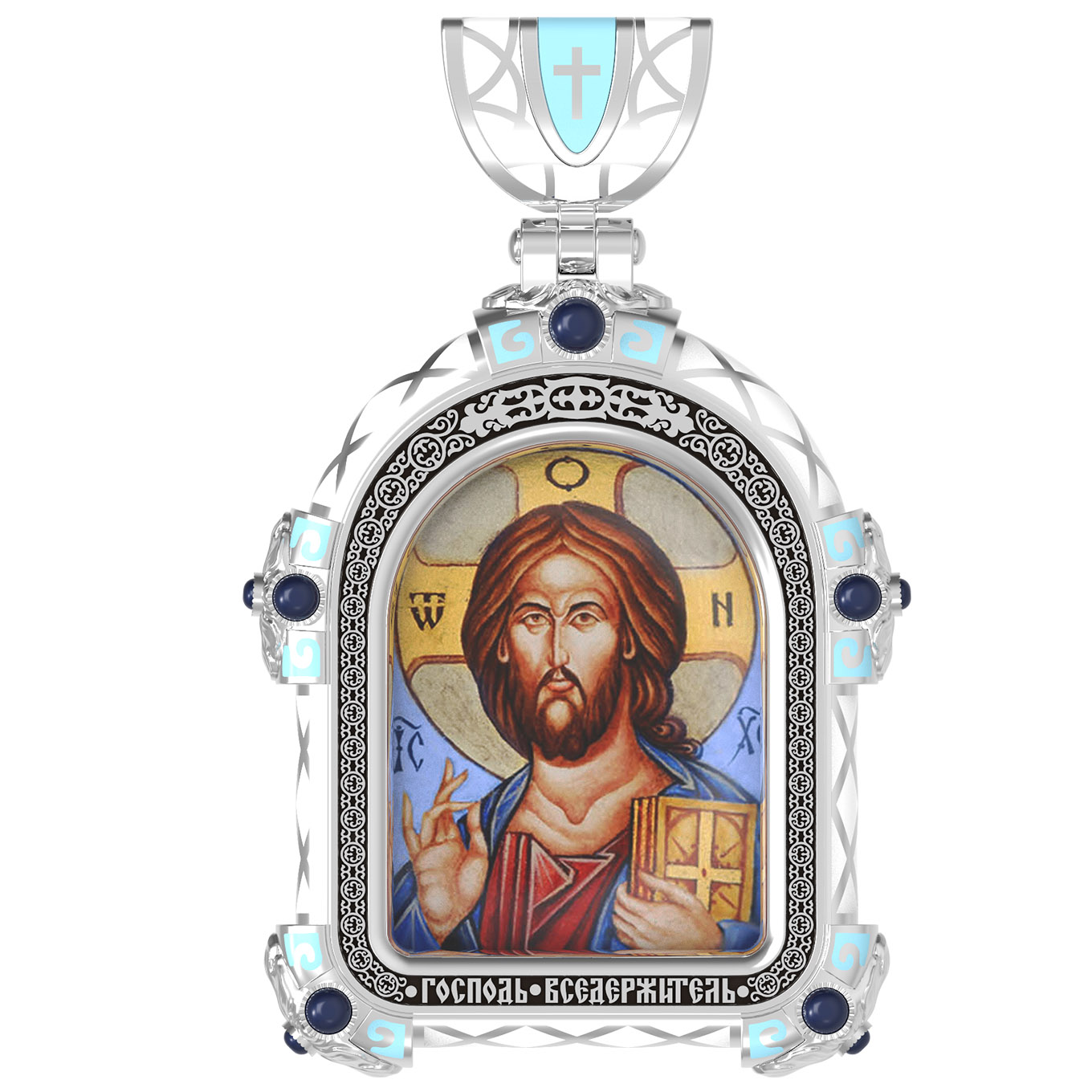 На лицевой стороне образка изображена икона Господа и Спасителя нашего Иисуса Христа  — Господь Вседержитель или Пантократор (от греч. всевластный, всесильный). Он представлен как Царь Небесный и будущий Судия мира. Именование Иисуса «Вседержителем» указывает, с одной стороны, на Его Божественную природу: «Аз есмь Альфа и Омега, начало и конец, говорит Господь, Который есть и был и грядет, Вседержитель» (Откр. 1: 8). С другой стороны, такое именование связано и с человеческой природой Христа, искупившего крестной жертвой людские грехи и обновившего тем самым человеческую природу. Господь Иисусь Христос изображен фронтально огрудно. Главу Спасителя осеняет нимб, на нем угадывается крест. Крест символизирует голгофскую жертву Спасителя. По греческой традиции, на нимбе написаны буквы Омега, Омикрон, Ню — вместе они обозначают слово Сущий, одно из имен и характеристику Бога, согласно Священному Писанию. Правой рукой Он благословляет, а левой держит Евангелие — благую весть, принесенную Христом всему миру. Также означает она тот новый мир, который будет сотворен Богом после второго пришествия Христа. Символизирует и Книгу Жизни, где записаны имена всех, возлюбивших Бога. Всемогущий Бог предстает здесь не как обличающий судья, а как милостивый отец, ждущий возвращения блудных детей.