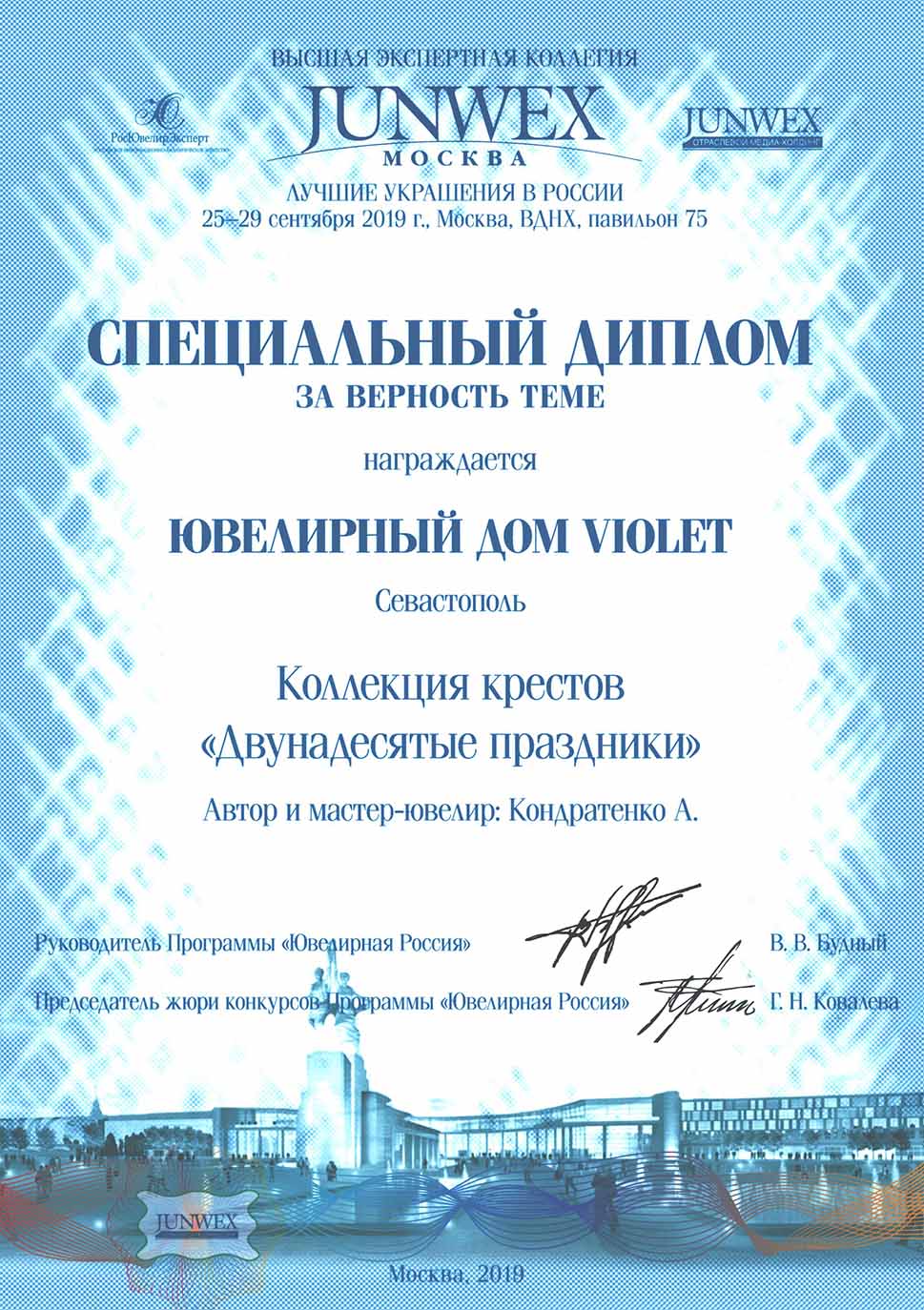 На оборотной стороне креста изображена икона Успения Пресвятой Богородицы. Все годы после Распятия, Воскресения и Вознесения Иисуса Христа Пресвятая Дева провела большей частью в Иерусалиме, проповедуя Господа наравне с апостолами. Но вот настало время Ее земной кончины. Архангел Гавриил возвестил Ей, что через три дня душа Ее оставит тело. Но Богородица очень обрадовалась. Ведь Ее ожидала встреча с Тем, Кого Она любила гораздо больше, чем жизнь. Три дня спустя в доме апостола Иоанна, где жила Мария, собрались и другие апостолы: Господь чудесным образом устроил так, что все они вернулись к этому дню из дальних странствий, где проповедовали Христа. Не было только Фомы. Апостолы стали свидетелями блаженной кончины Святой Девы. Сам Христос, окруженный множеством ангелов, явился, чтобы принять душу Своей Пречистой Матери и возвести Ее в рай. На кулонном кольце изображен шестикрылый Ангел — Серафим.