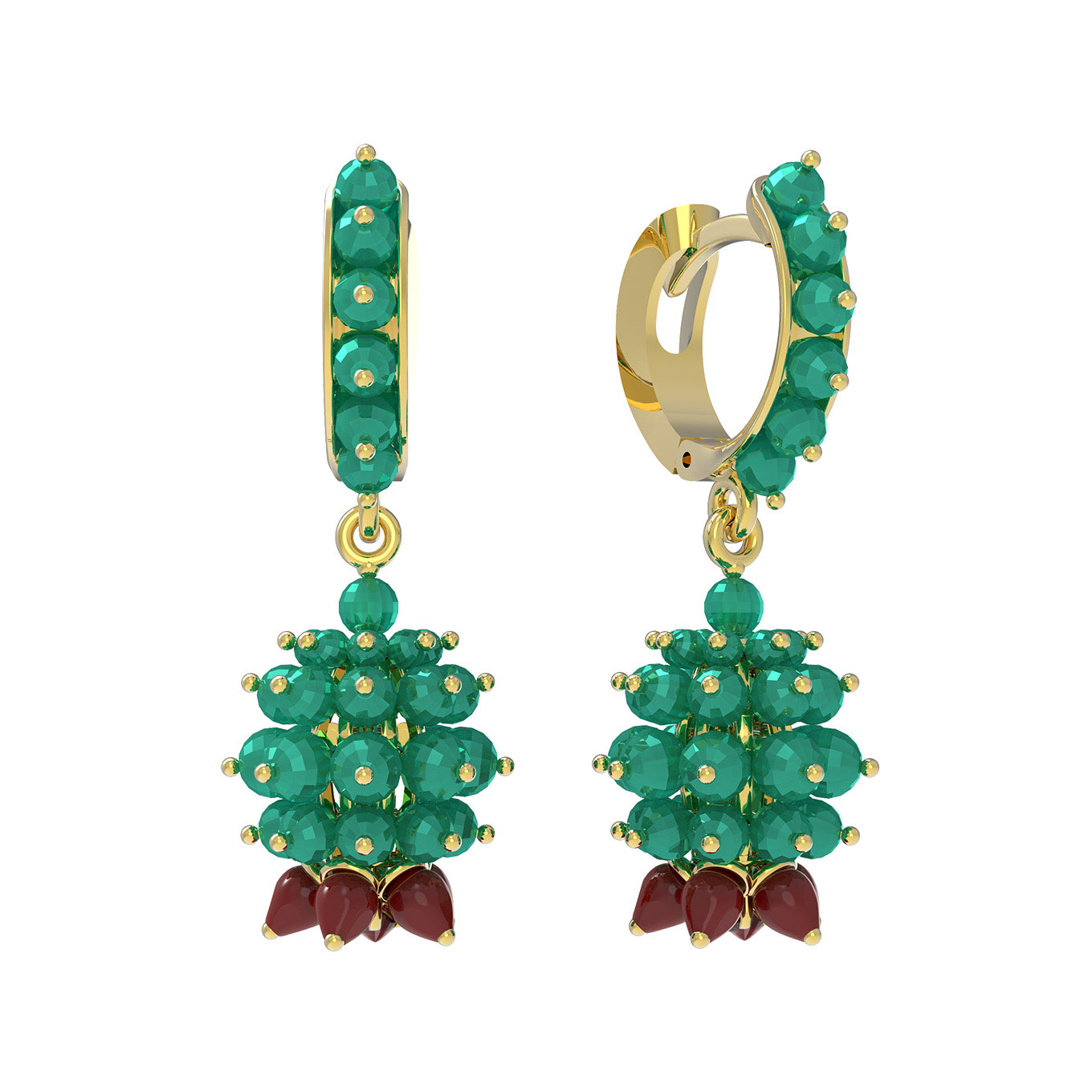 Серьги из лимонного золота c гранатом, хризопразом и кораллом