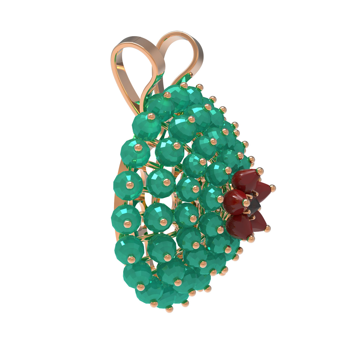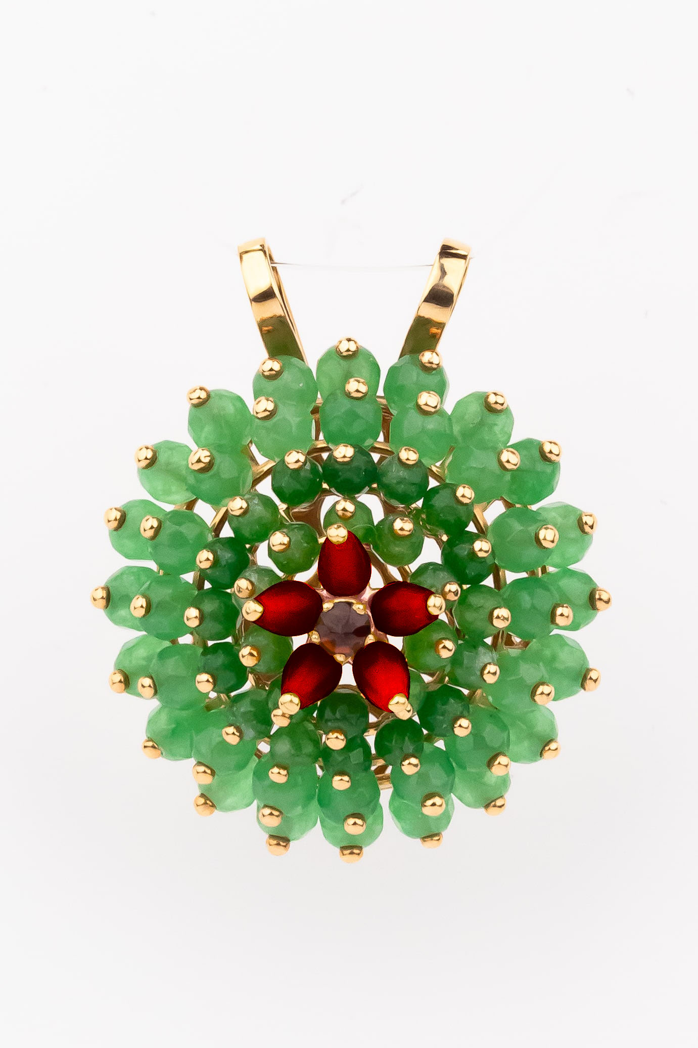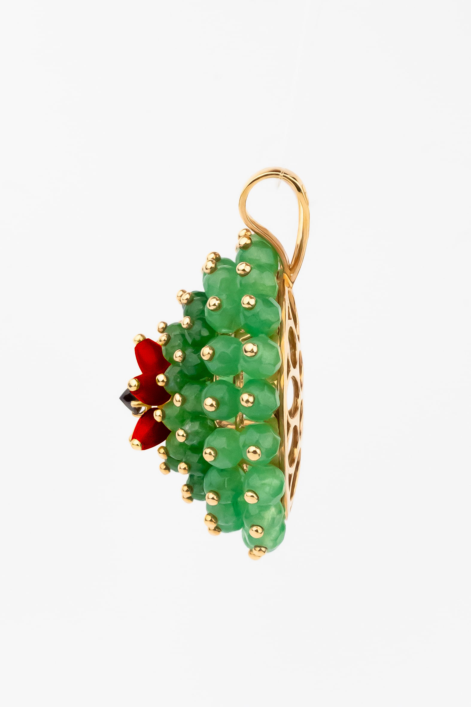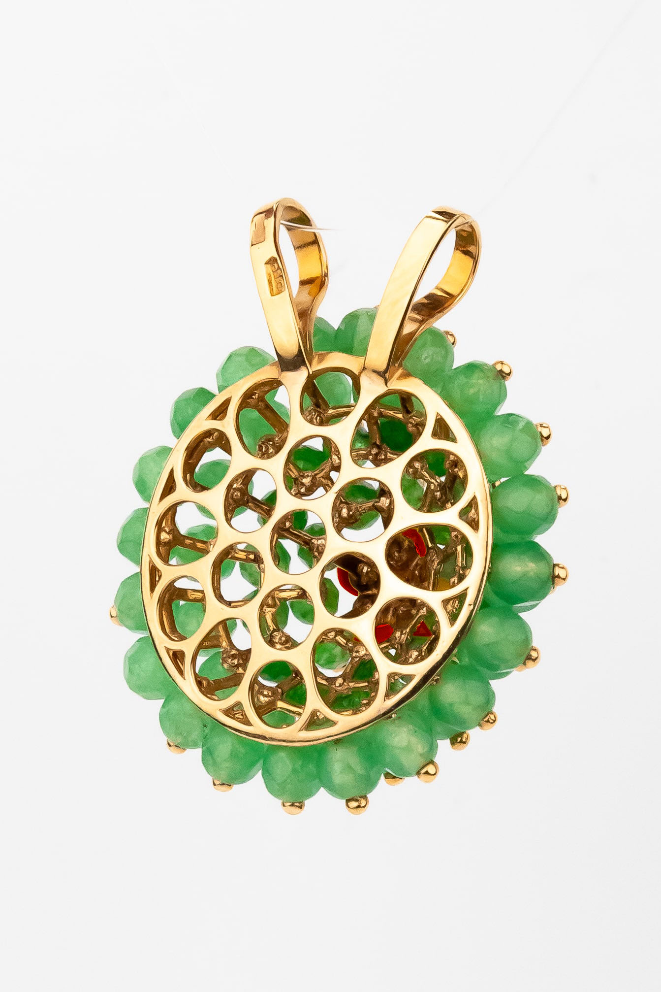 Подвеска из золота c гранатом, хризопразом и кораллом