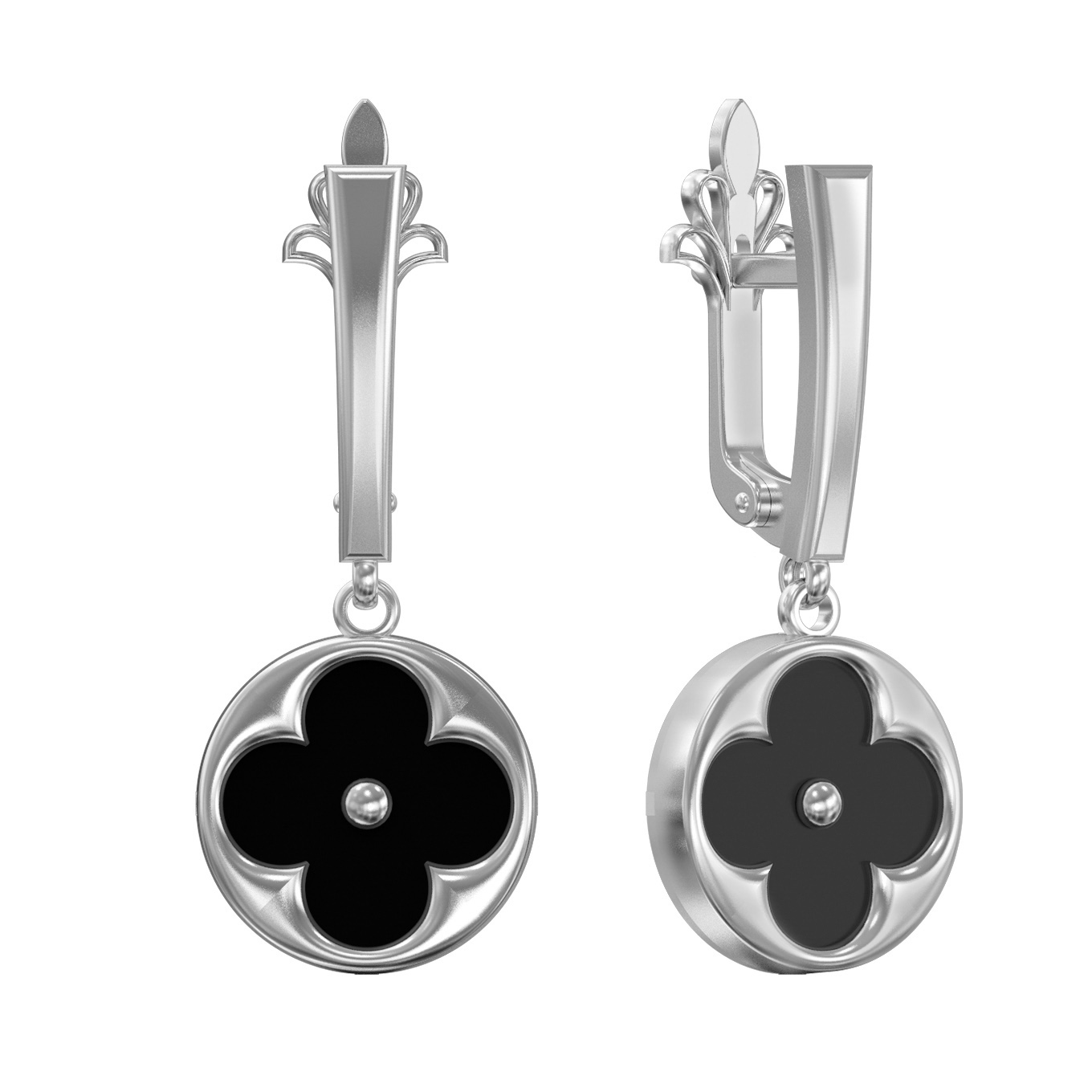 Серьги из белого золота c ониксом