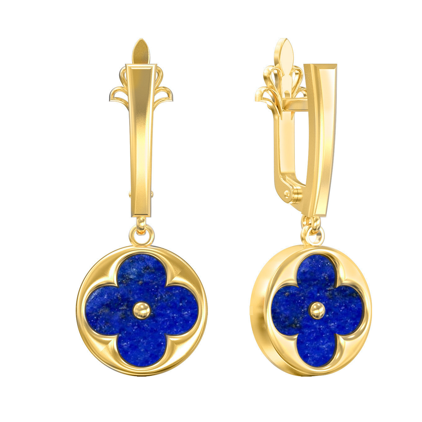 Серьги из лимонного золота c лазуритом