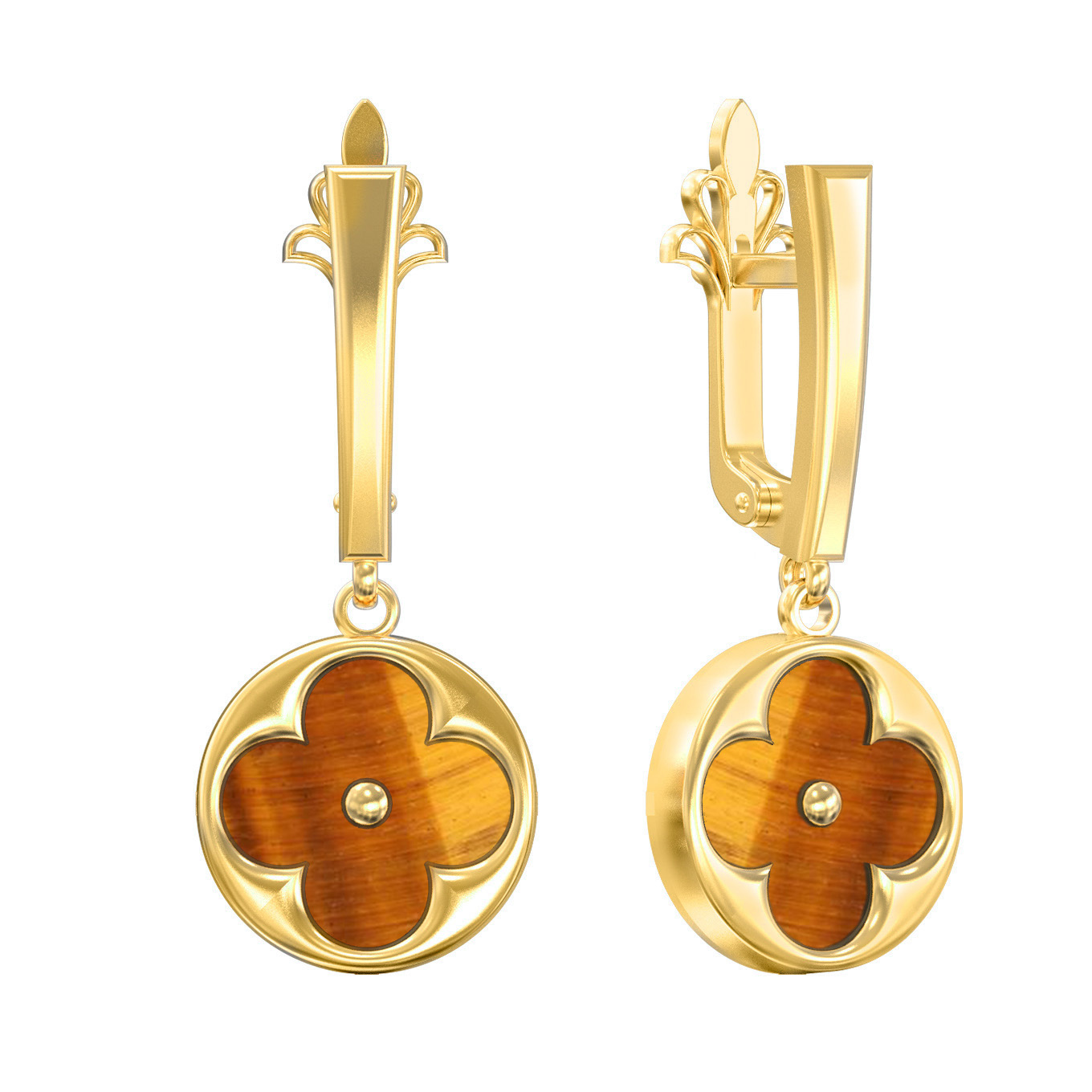 Серьги из лимонного золота c тигровым глазом