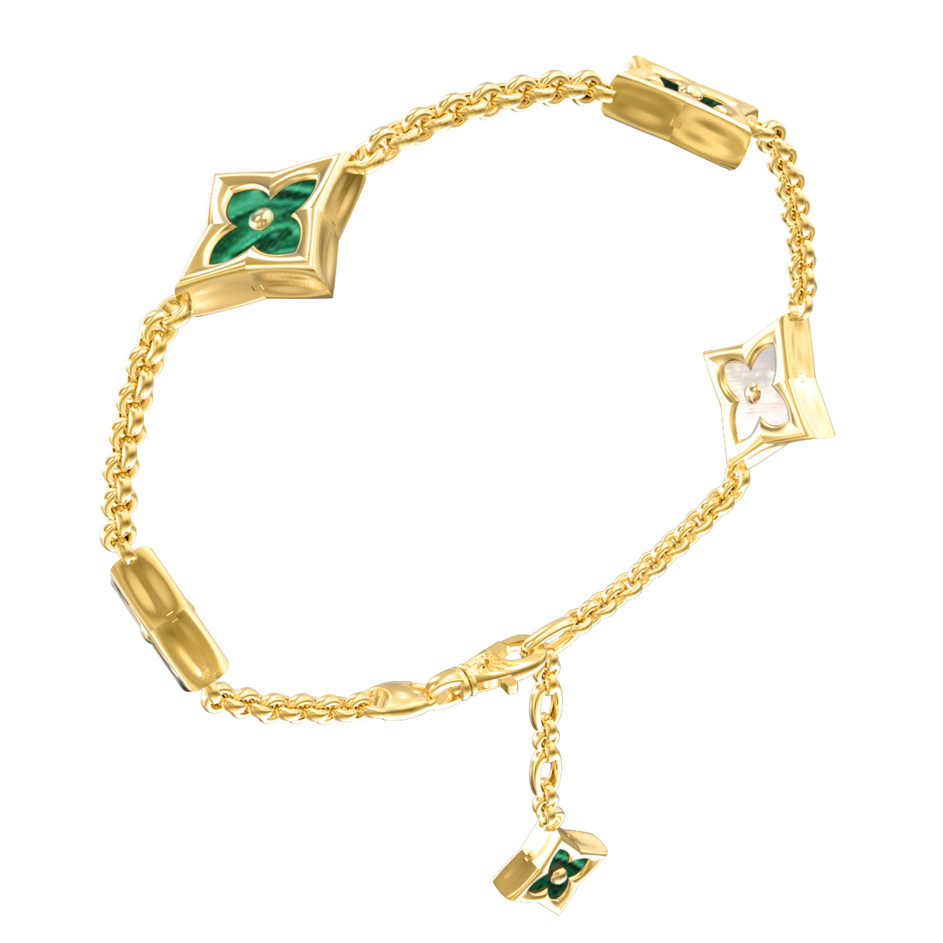 Браслет из лимонного золота c малахитом и перламутром