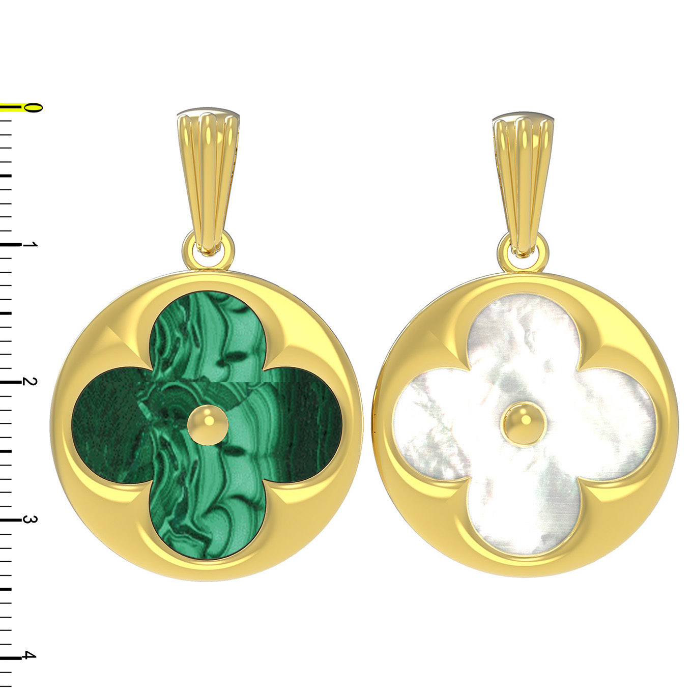 Подвеска из лимонного золота c малахитом и перламутром