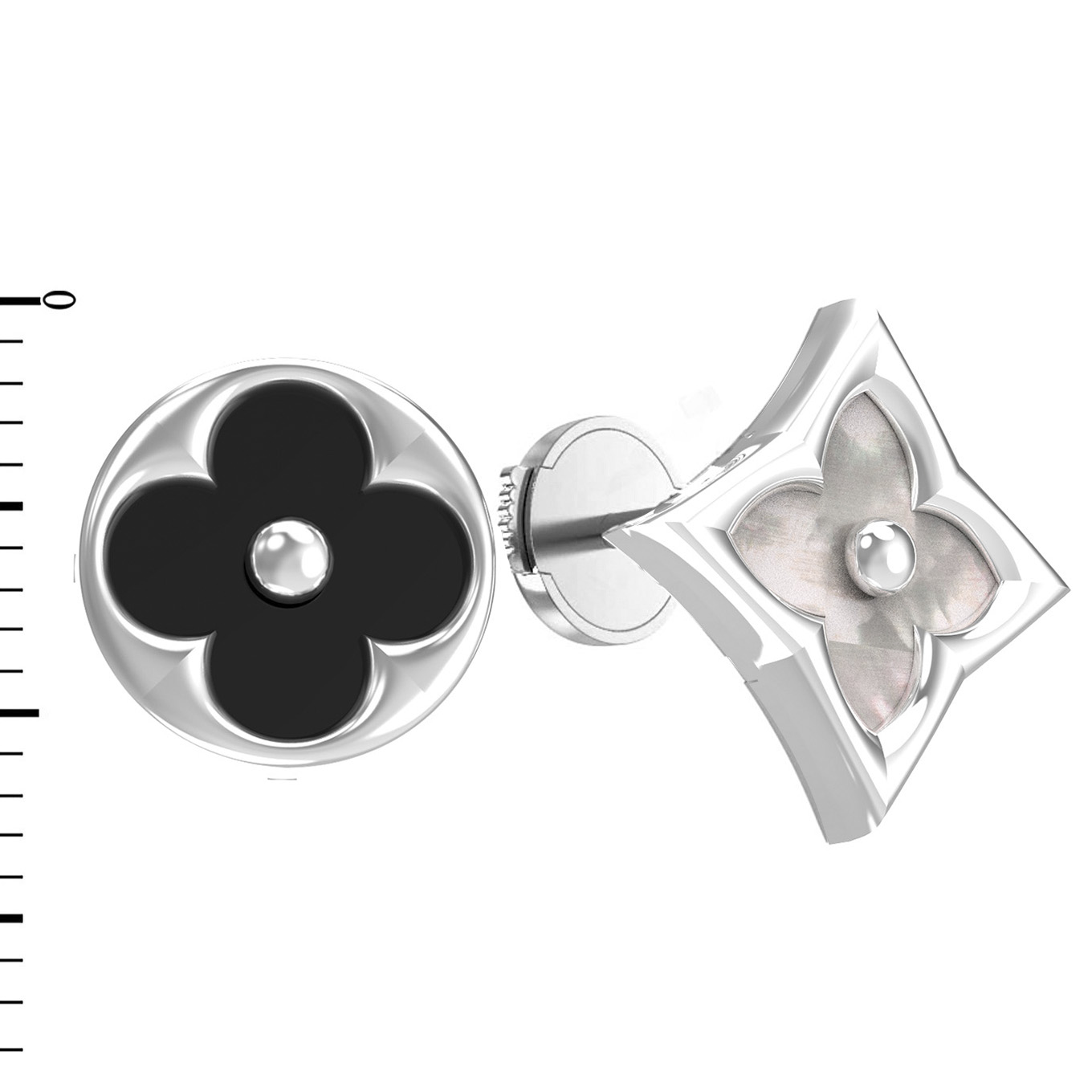 Серьги из белого золота c ониксом и перламутром