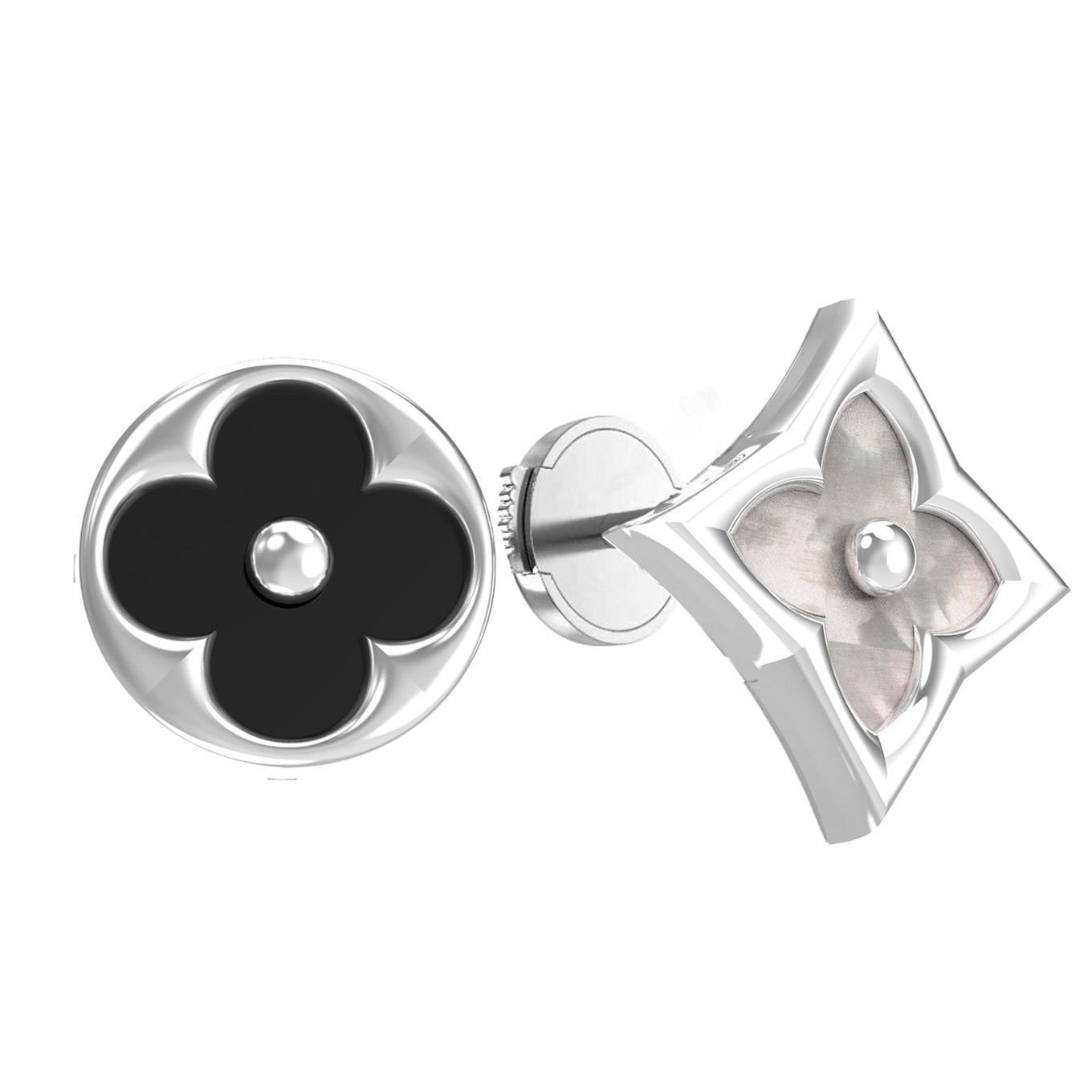 Серьги из белого золота c ониксом и перламутром