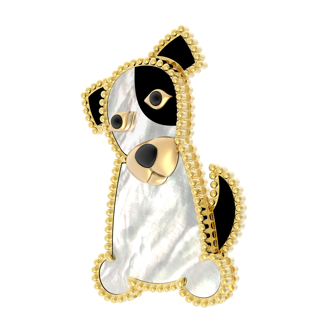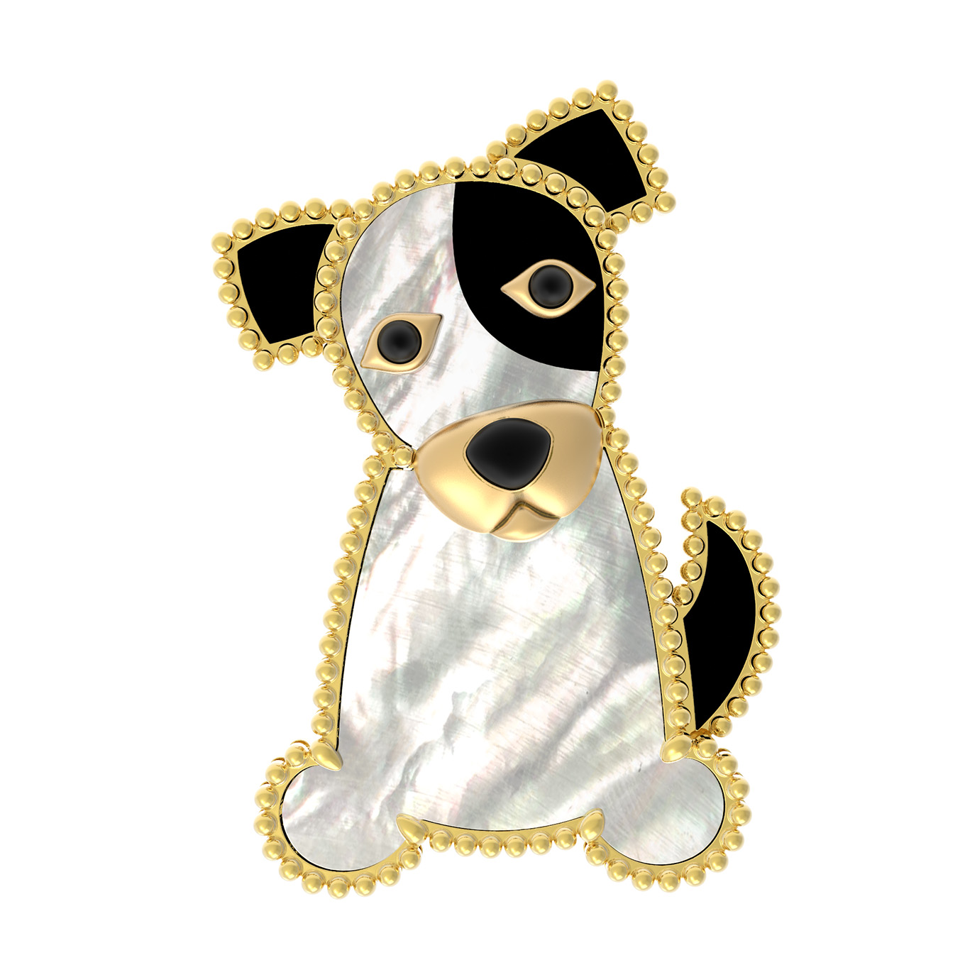 Брошь из лимонного золота c эмалью, ониксом и перламутром