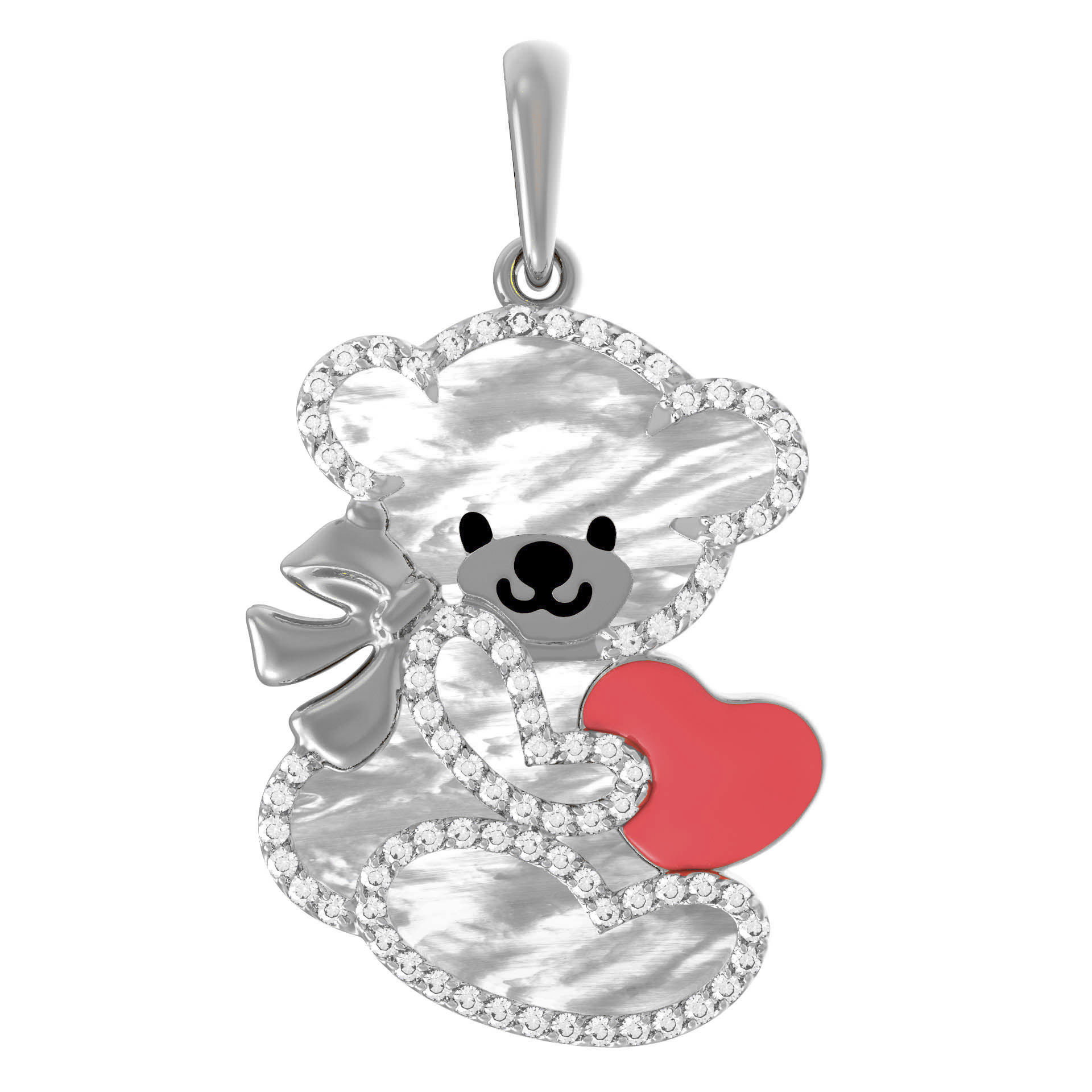 Подвеска из белого золота c эмалью, фианитом и перламутром