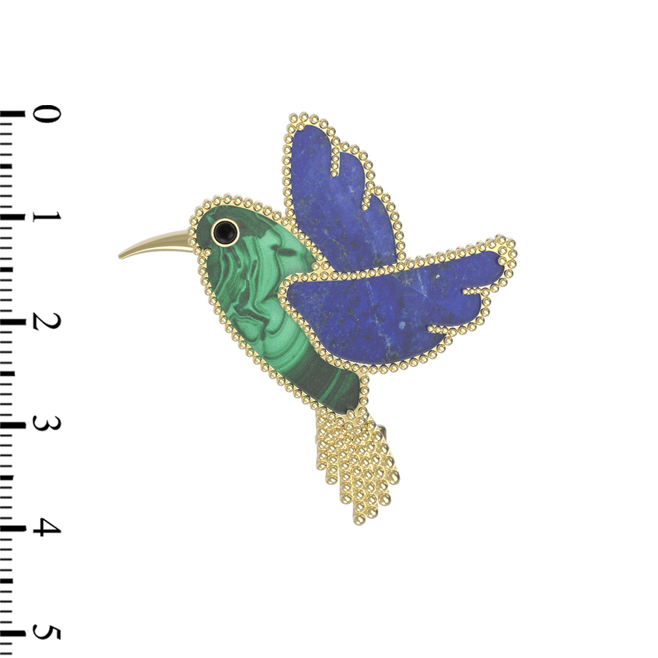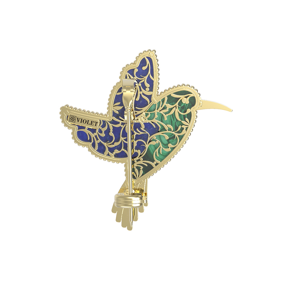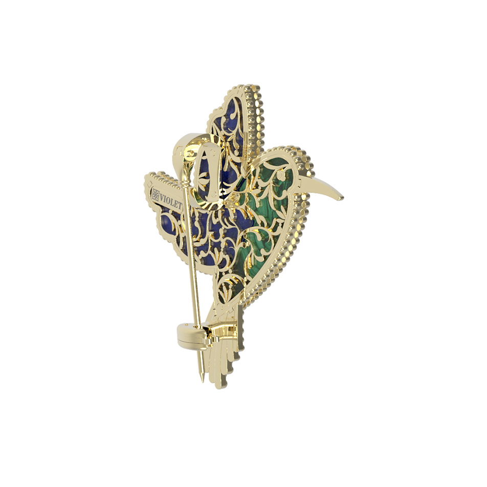 Брошь из лимонного золота c эмалью, лазуритом и малахитом