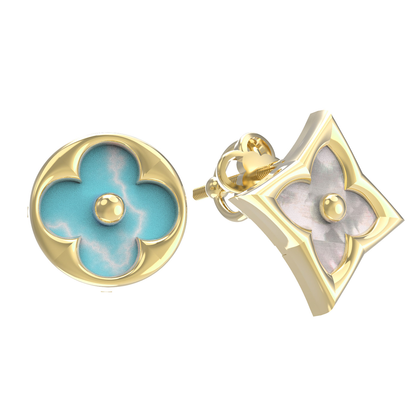 Серьги из лимонного золота c бирюзой и перламутром