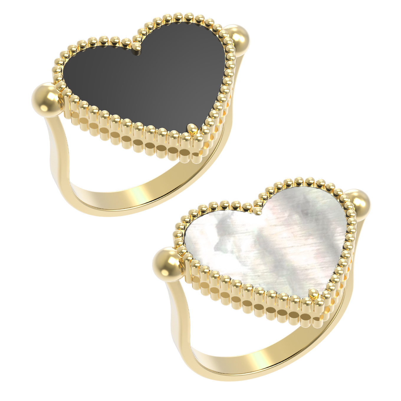 Кольцо из лимонного золота c ониксом и перламутром